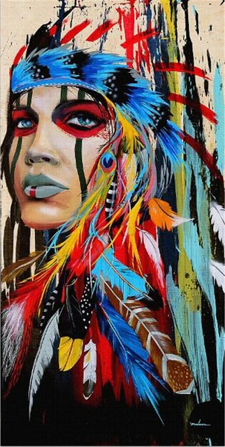 Акварельная индийская женщина с перьями, картины на холсте, поп-арт...