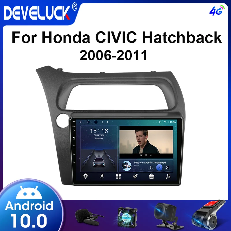 Автомагнитола 2DIN, 6 + 128 ГБ, Android 10, мультимедийный видеоплеер для Honda Civic Hatchback 2006-2011, головное устройство с GPS-навигацией и стереозвуком