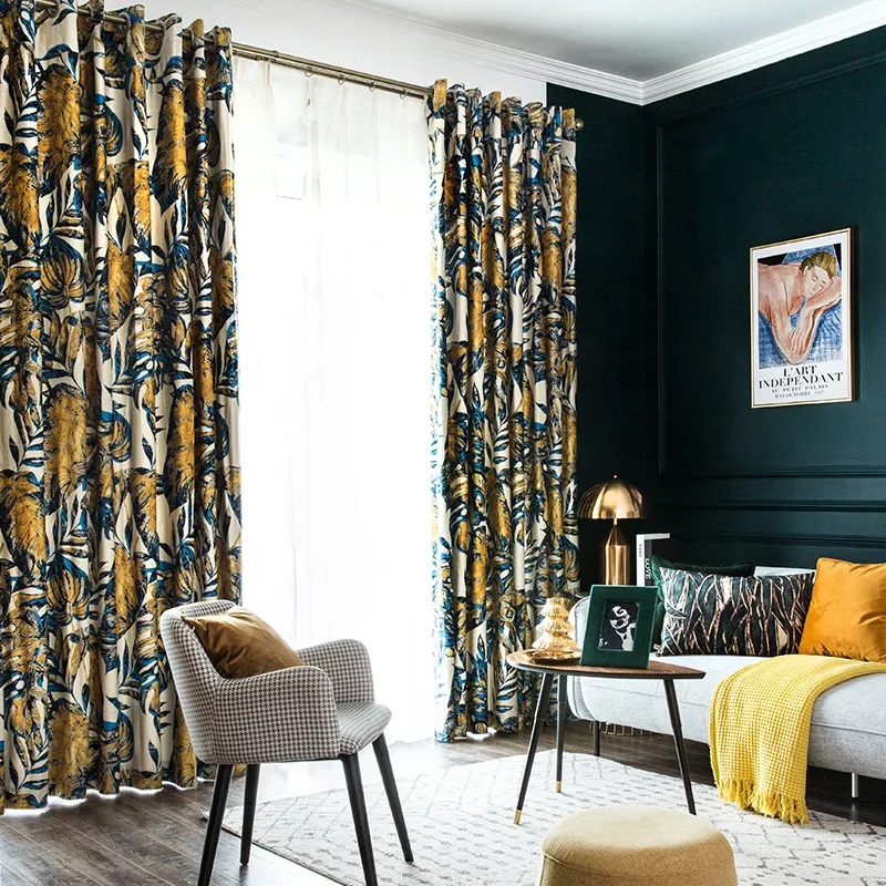Роскошные занавески для фотографий, занавески с принтом листьев, бархатные тканевые жалюзи, теплоизолированные затемняющие шторы s