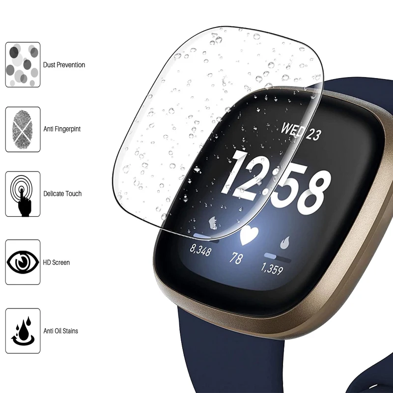 Прозрачная защитная пленка из ТПУ для умных часов Fitbit Versa 3 Sense, 2 шт., ультратонкая Гидрогелевая прозрачная защитная пленка для экрана с полным покрытием