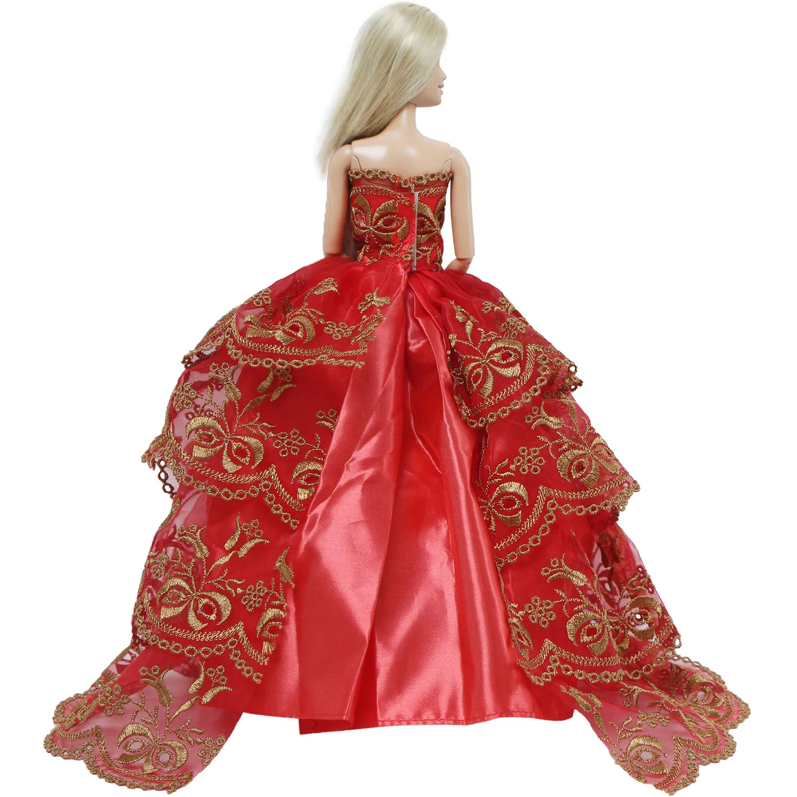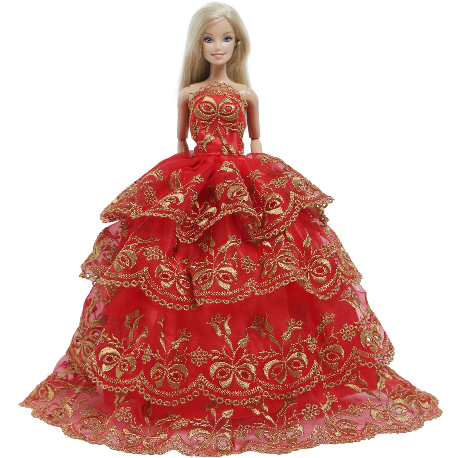 1x Красное Бальное Платье принцессы ручной работы с вышивкой без бретелек элегантная многослойная одежда китайское свадебное платье для куклы Барби игрушка