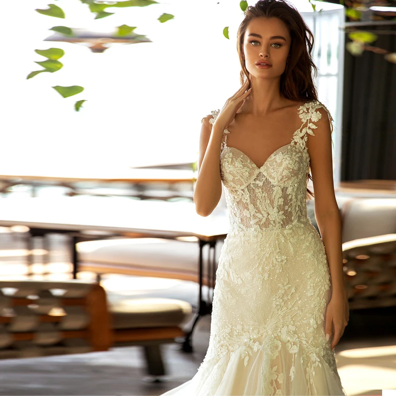 Женское свадебное платье с юбкой годе, кружевное платье на тонких б...