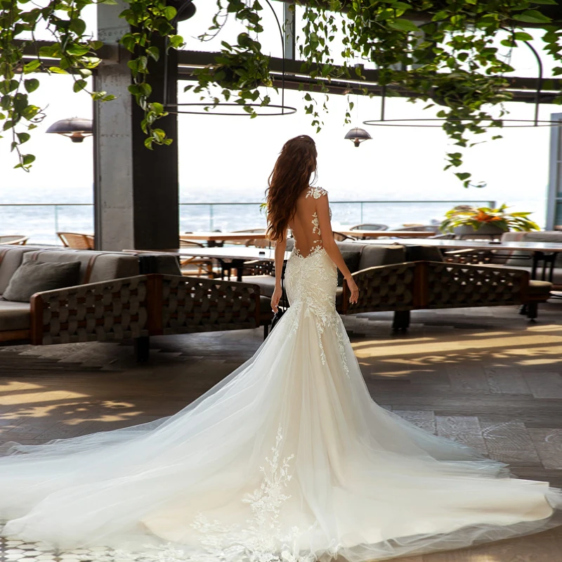 Очаровательные кружевные свадебные платья с юбкой-годе, с круглым в...