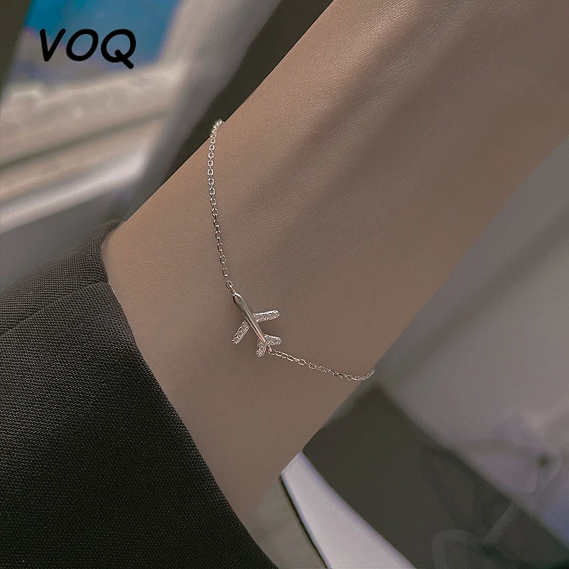 Женский браслет с цирконом VOQ, Серебристый браслет с подвеской в виде самолета, подарок