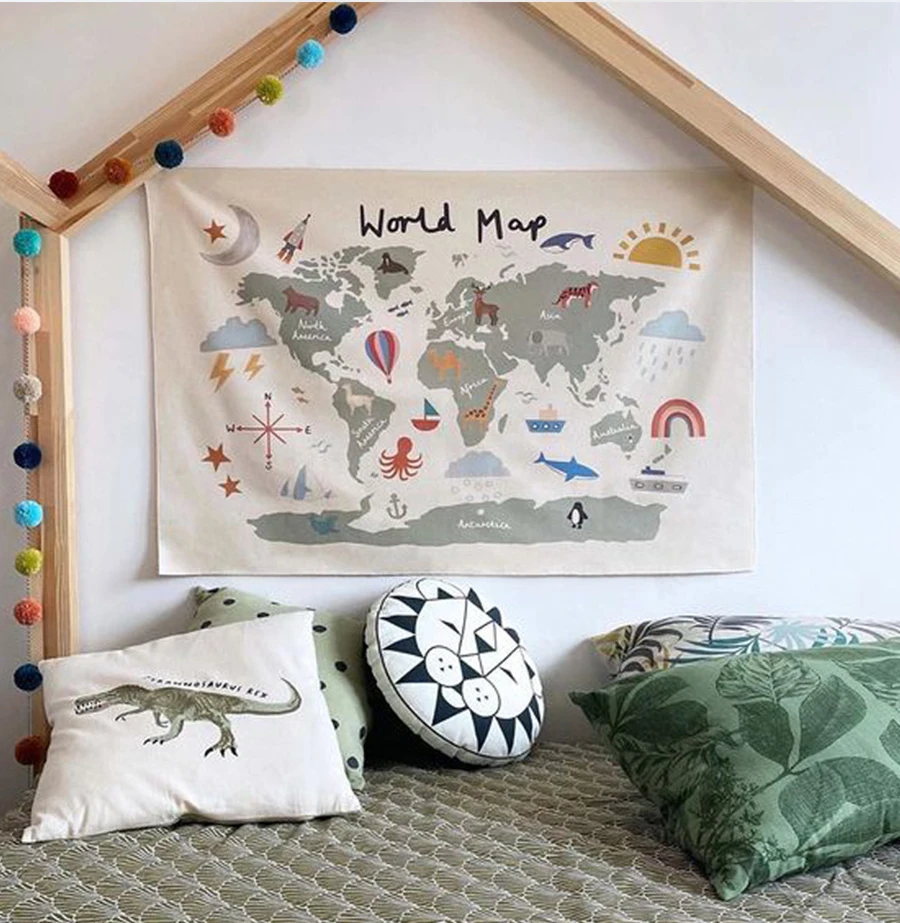 Гобелен с картой мира, настенные украшения, скандинавский холст, настенный гобелен для спальни, детской комнаты, Настенный декор, реквизит для фотосъемки