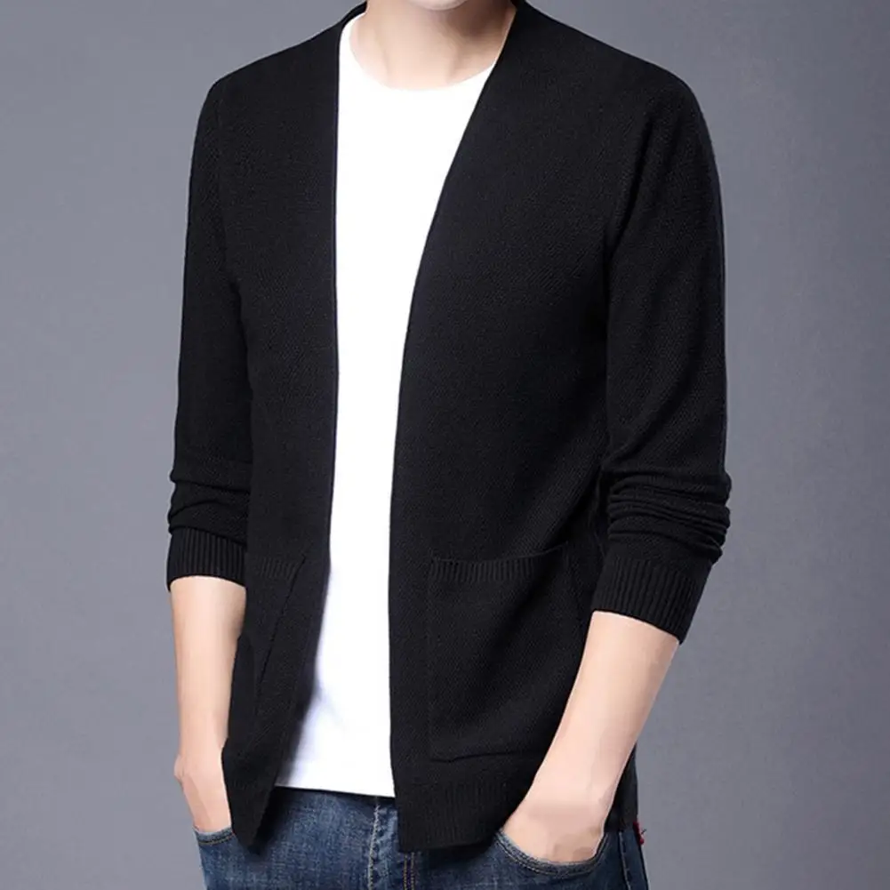 Feature 3With Pocket Sweater Ribbing Hem Cardigan Men