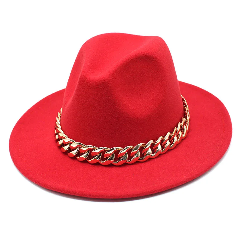 Шляпа в винтажном стиле для мужчин и женщин, фетровая Федора с широкими полями, с крупными цепочками и широкими полями, несколько цветов