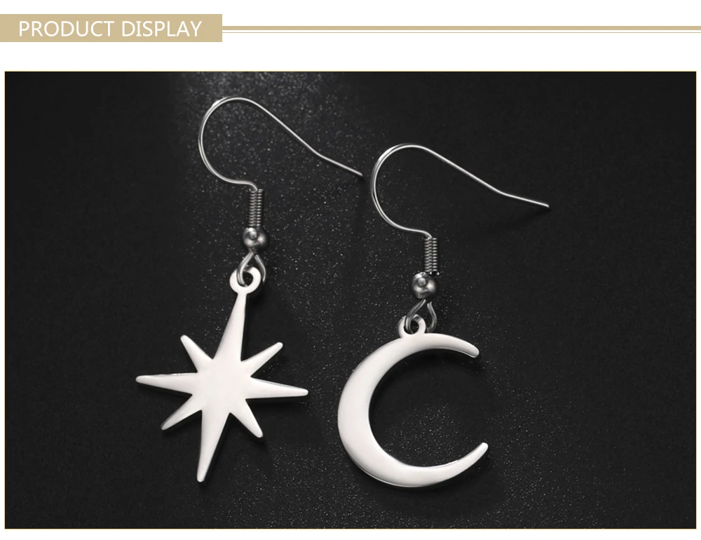 Женские серьги-подвески Sipuris, из нержавеющей стали, с Луной и зв...