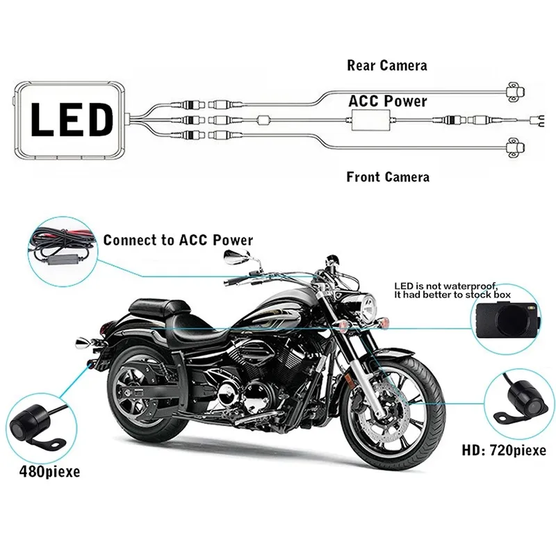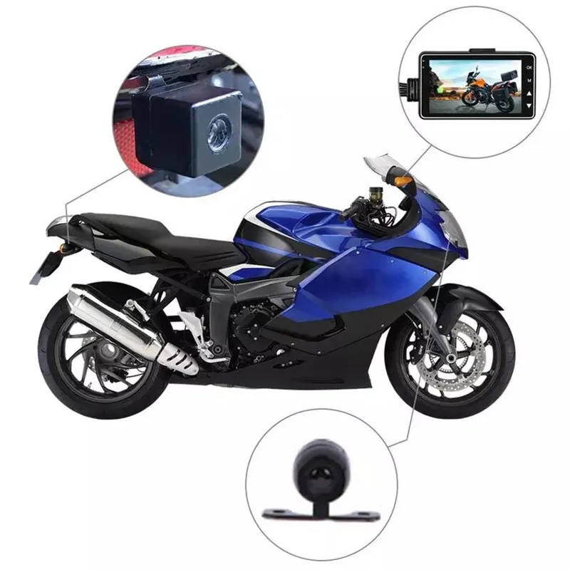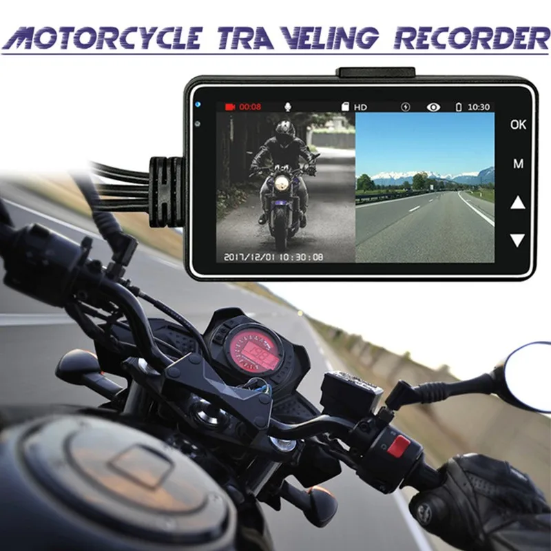 Видеорегистратор для мотоцикла, Full HD 1080P + 720P, камера заднего вида, водонепроницаемая, ночное видение, g-сенсор, камера для мотоцикла, черный Регистратор
