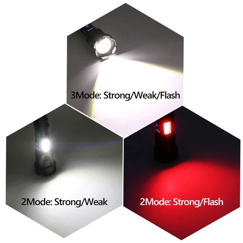 Сверхъяркая светодиодная вссветильник шка XHP199 с босветильник светом COB 10000 мАч USB перезаряжаемая светодиодная тактическая вспышка Масштабируемая и водонепроницаемая