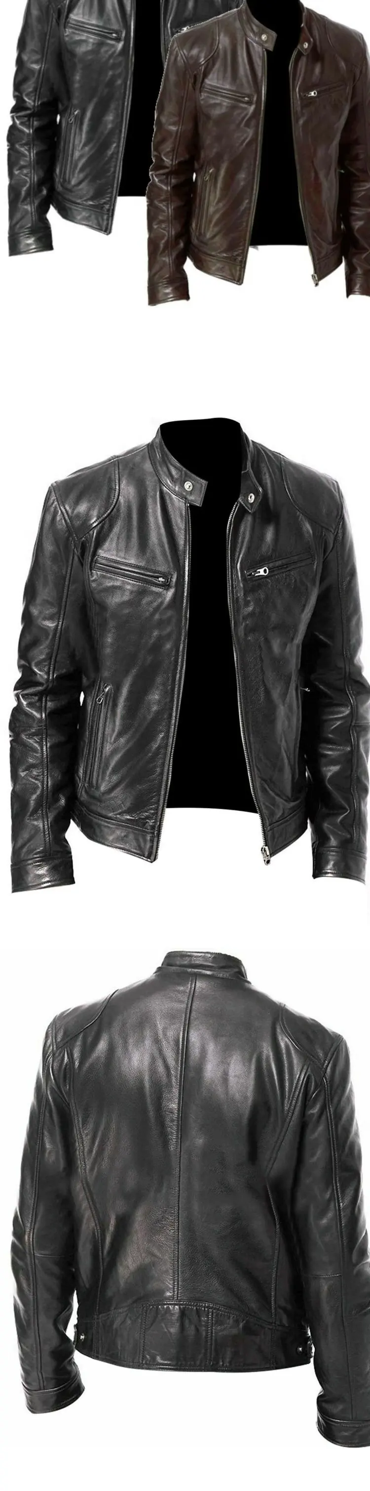 Модная мужская куртка из искусственной кожи, винтажная мотоциклетна...