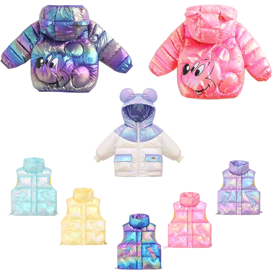 Зимние куртки для девочек 2021, пуховики для детей, одежда, куртка с капюшоном и мультяшным принтом Микки Мауса для мальчиков, зимняя верхняя одежда