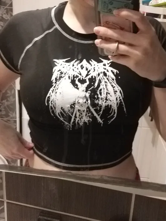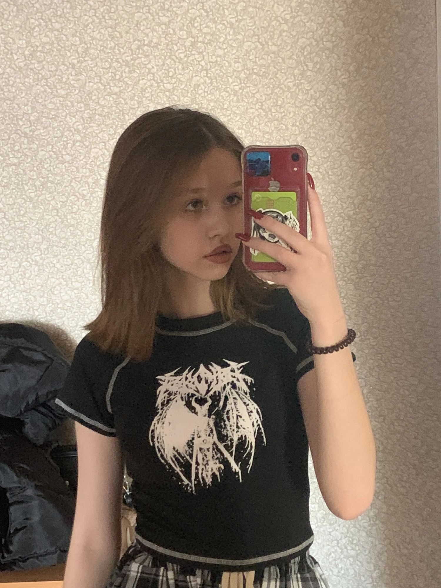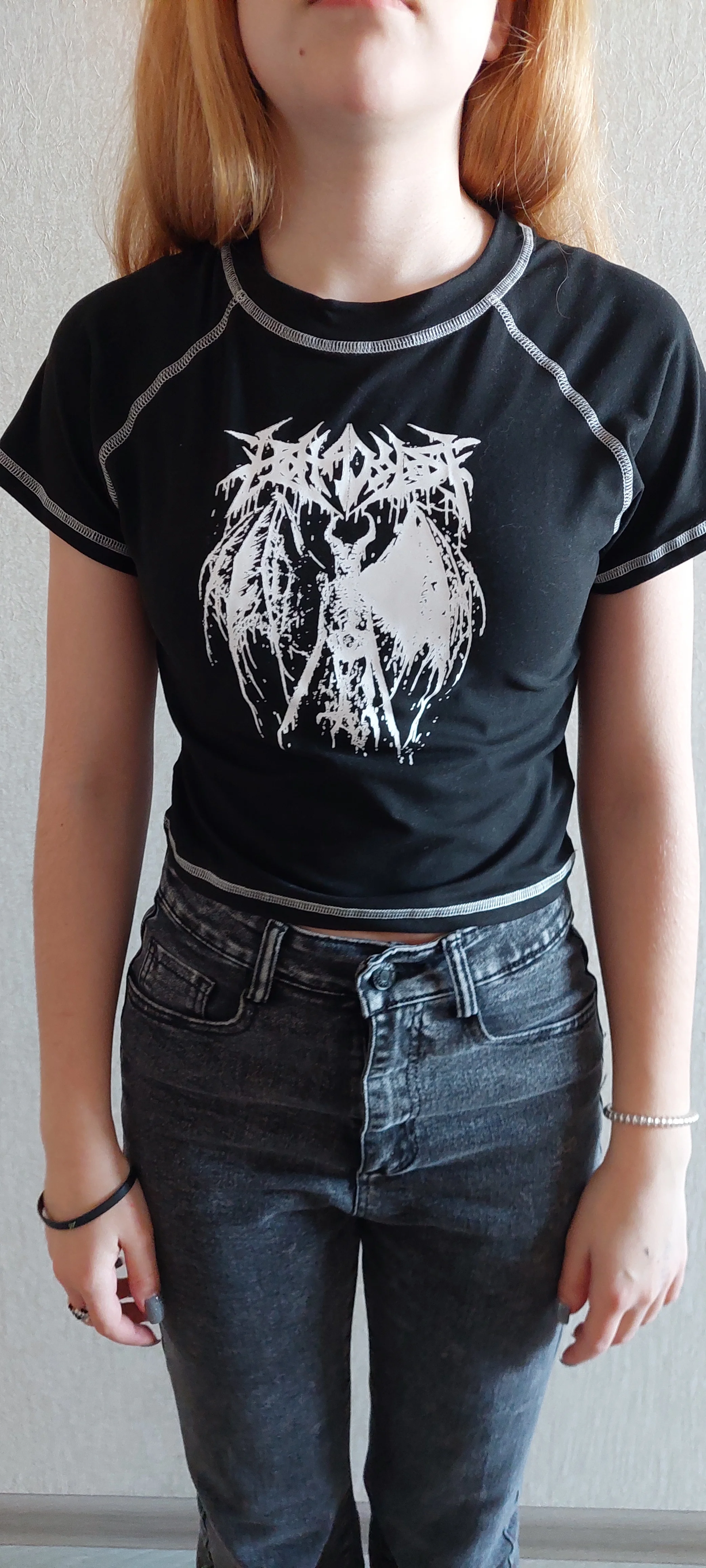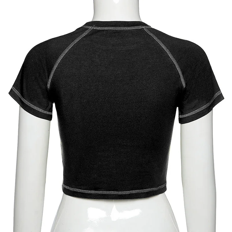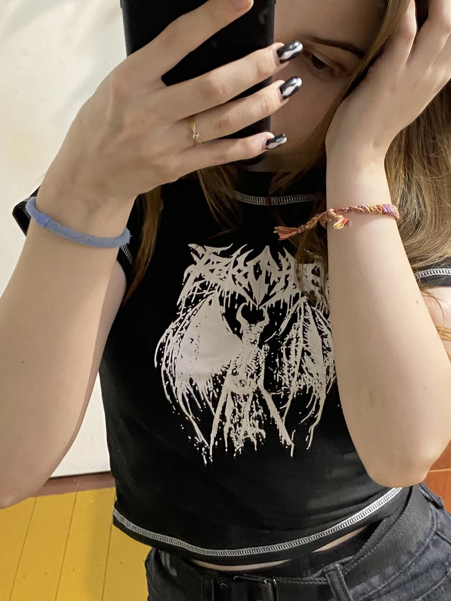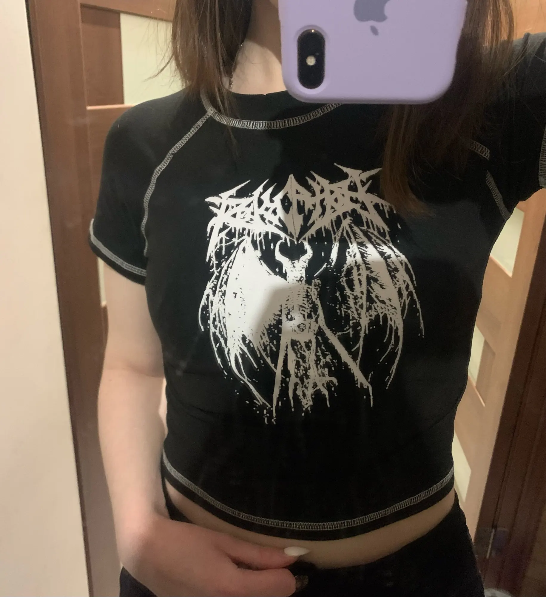 Женская футболка в стиле Харадзюку, укороченный топ в стиле ретро, Корейская, черная, демоническая, панк, Готическая, аниме, одежда с принтом, облегающая, аниме