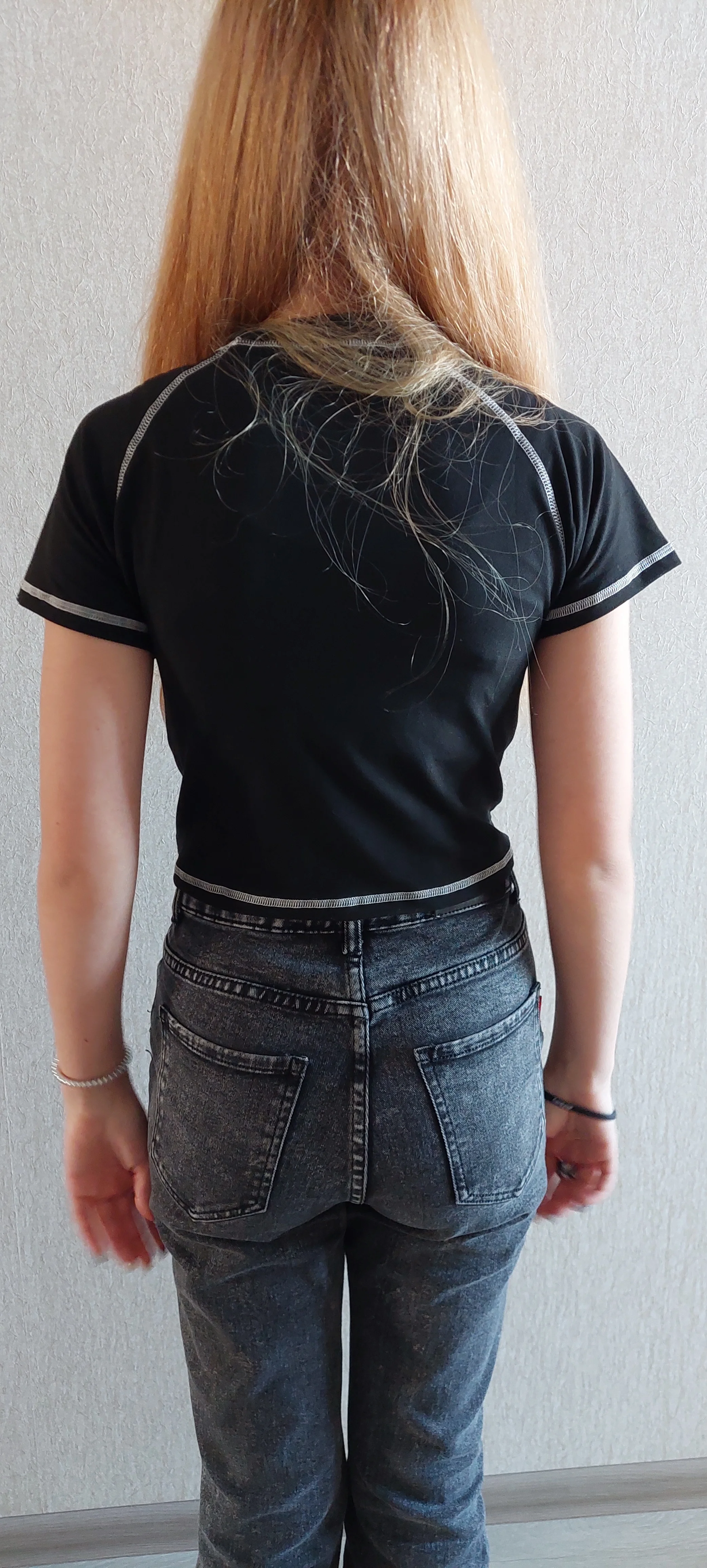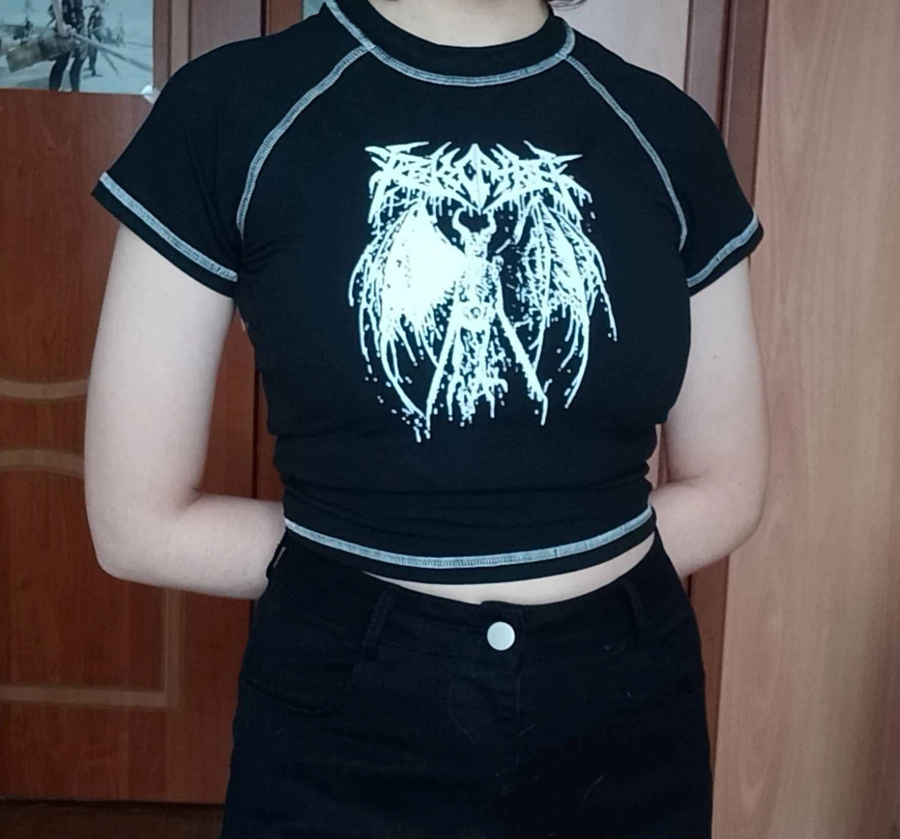в принципе неплохой топ, особенно за свою цену, размер м выглядел довольно мелким, думала не налезет, но он хорошо тянется. ткань синтетика, но приятная к телу. рисунок наклейка, сотрется 100%