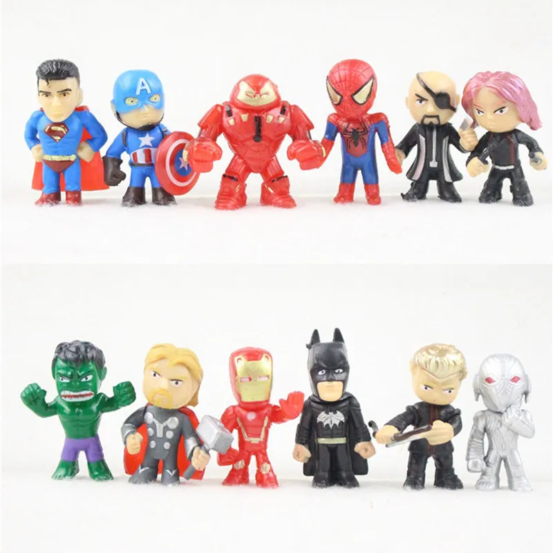 12 шт.компл. Фигурки Мстителей, мини-Фигурки Мстителей, Бэтмен, Хал...