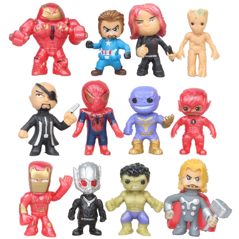 12 шт.компл. новые Q Мстители Мини-фигурки Халк Тор Человек-паук эк...