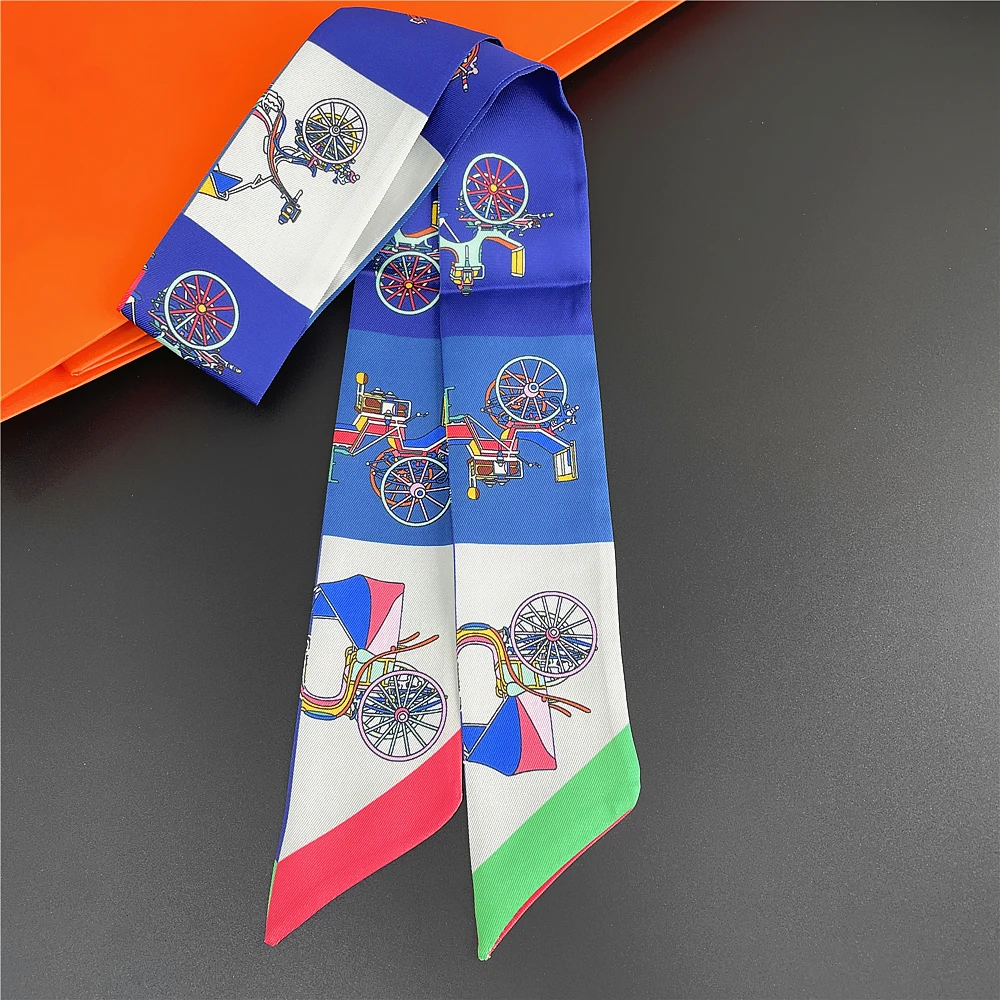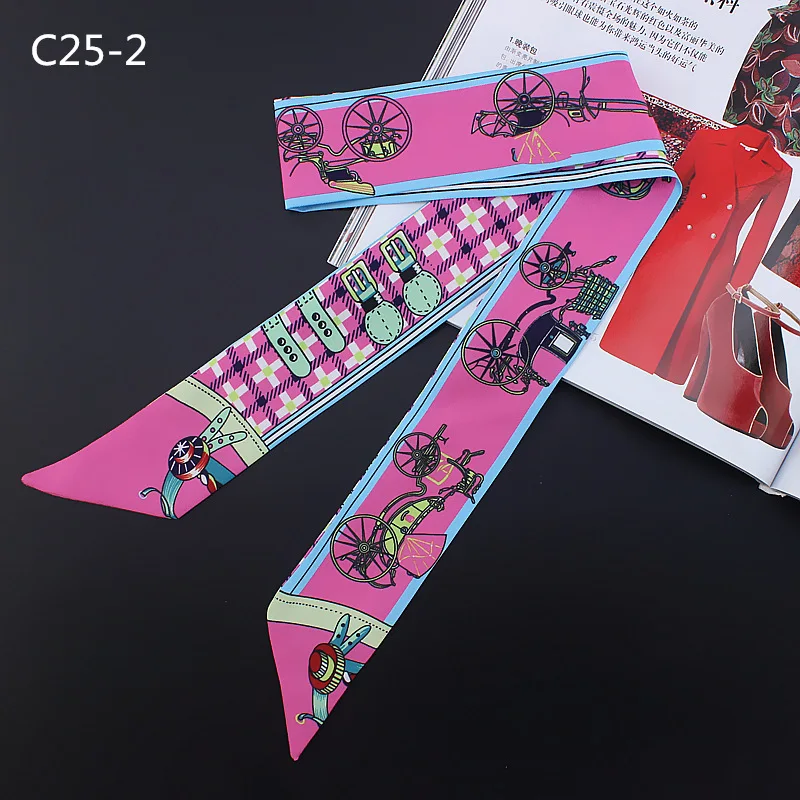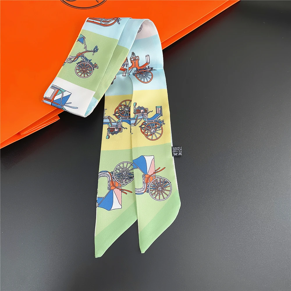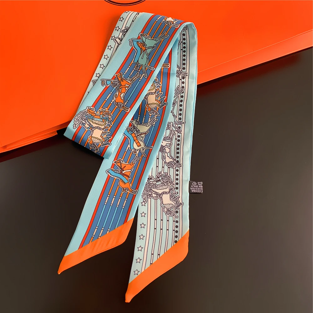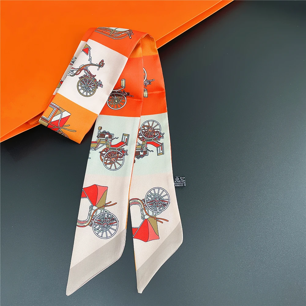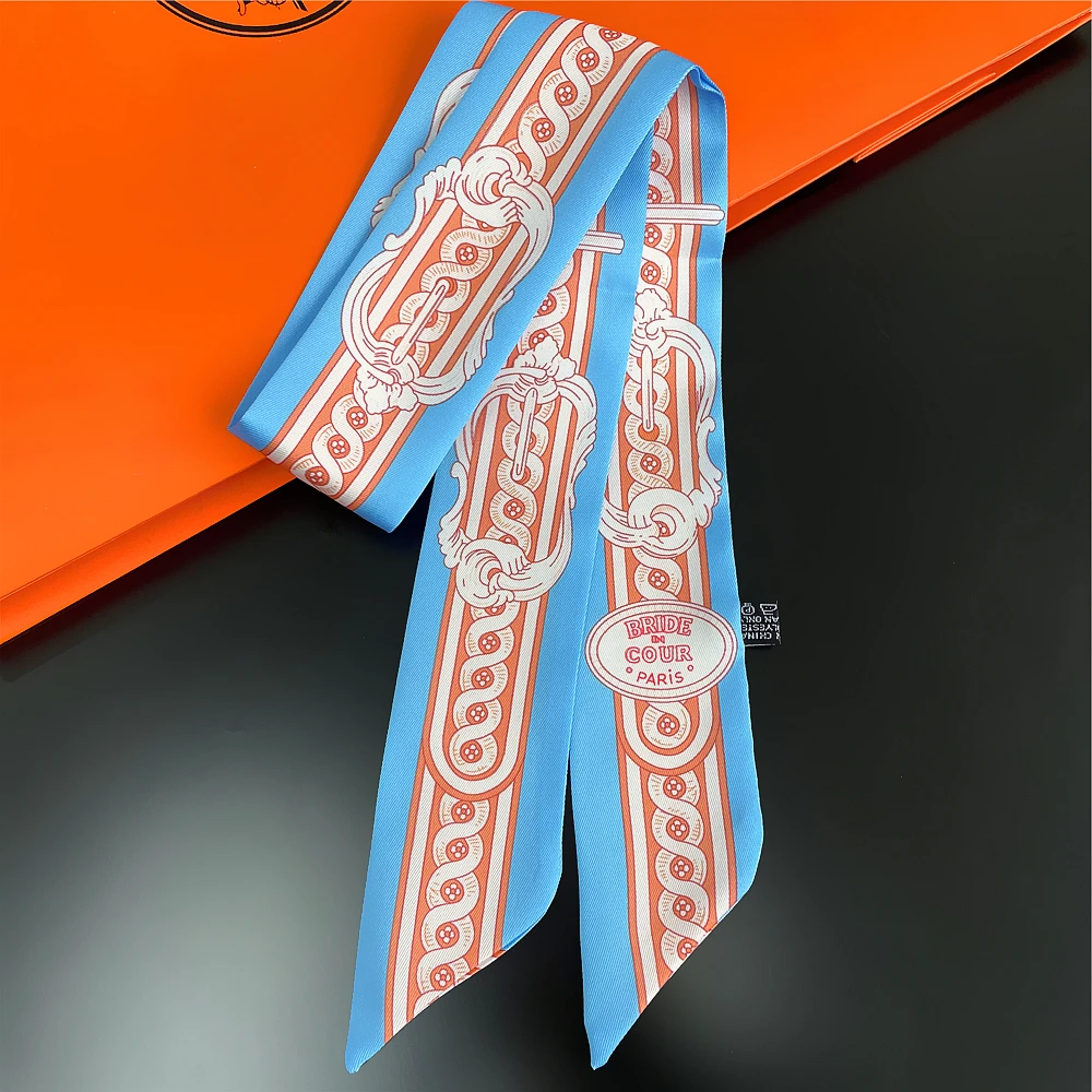 Шелковый шарф для женщин с надписью цепочка с принтом сумка ленты брендовый модный головной шарф маленькие длинные узкие шарфы