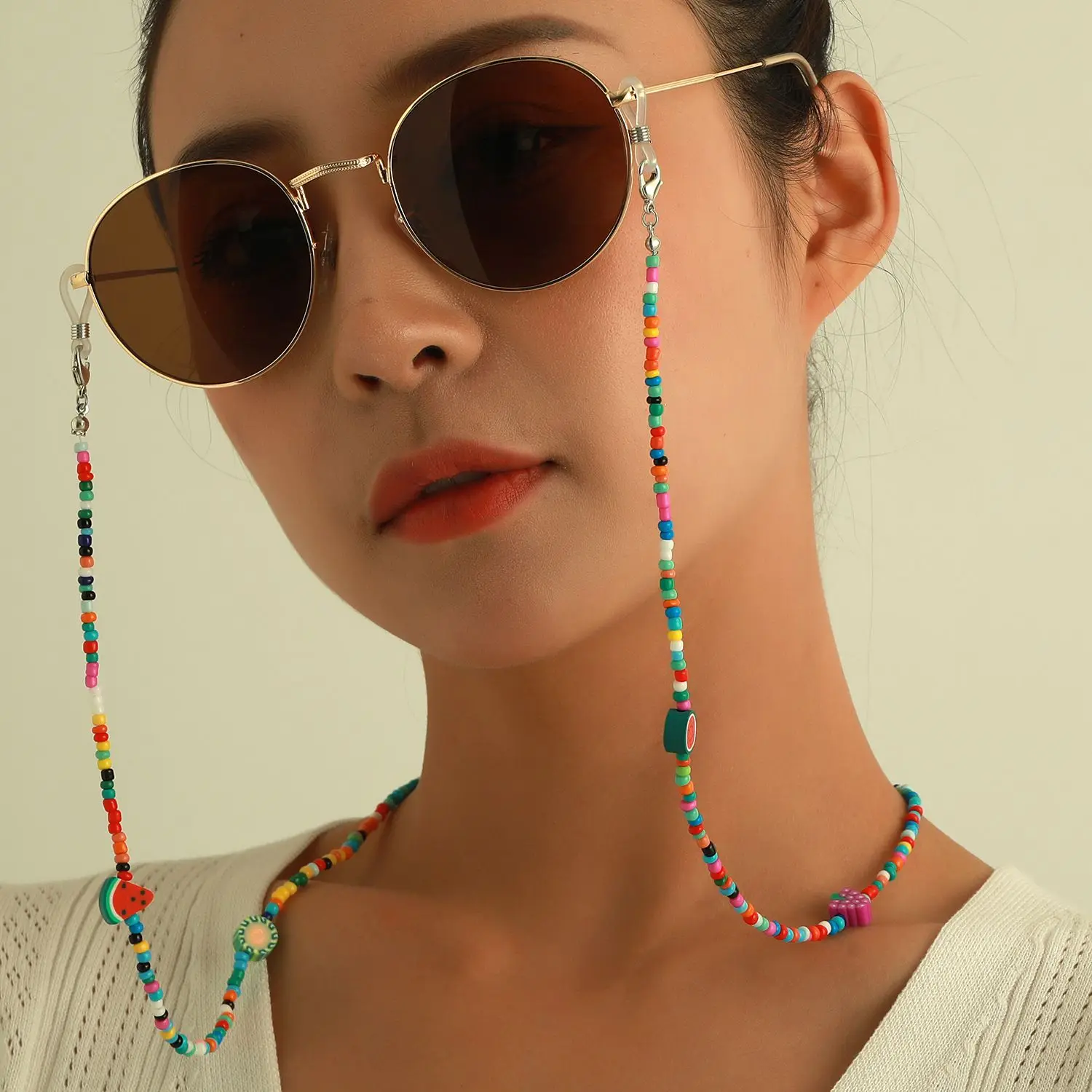 Богемный держатель цепочки для очков с фруктовыми бусинами женский красочный шнур для очков очки на веревке Нескользящая маска шнурок на шею