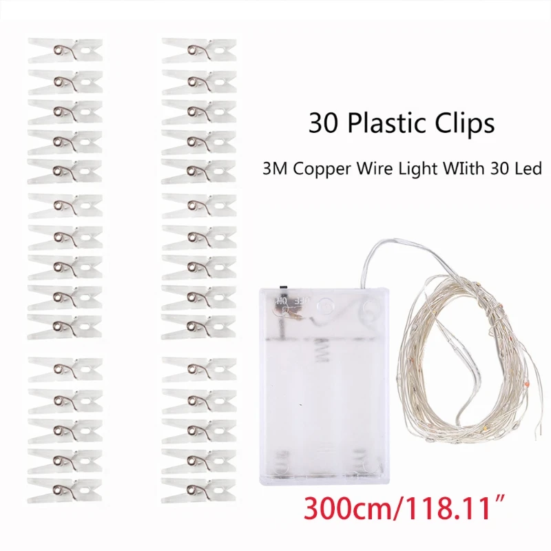 Гирлянда с зажимом для фото, 30 светодиодов, на батарейках, гирлянда с прищепками, домашний Свадебный Рождественский Декор