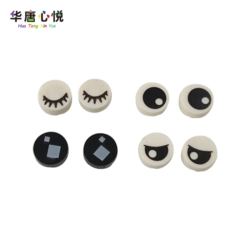 Соберите 10 шт Diy частей образовательные белые слепые рыбки черные квадратные белые прищуренные глаза белые круглые украшения строительные блоки