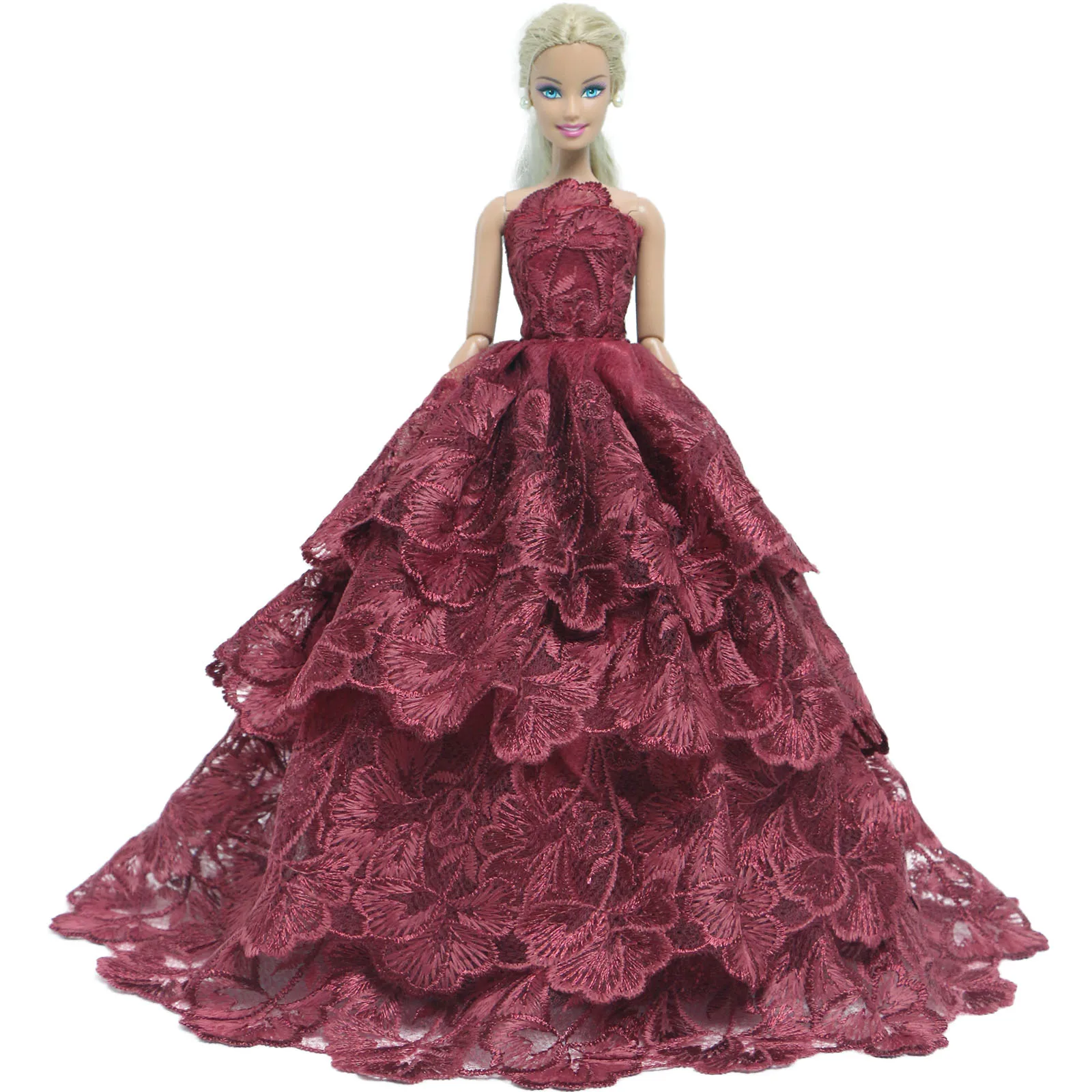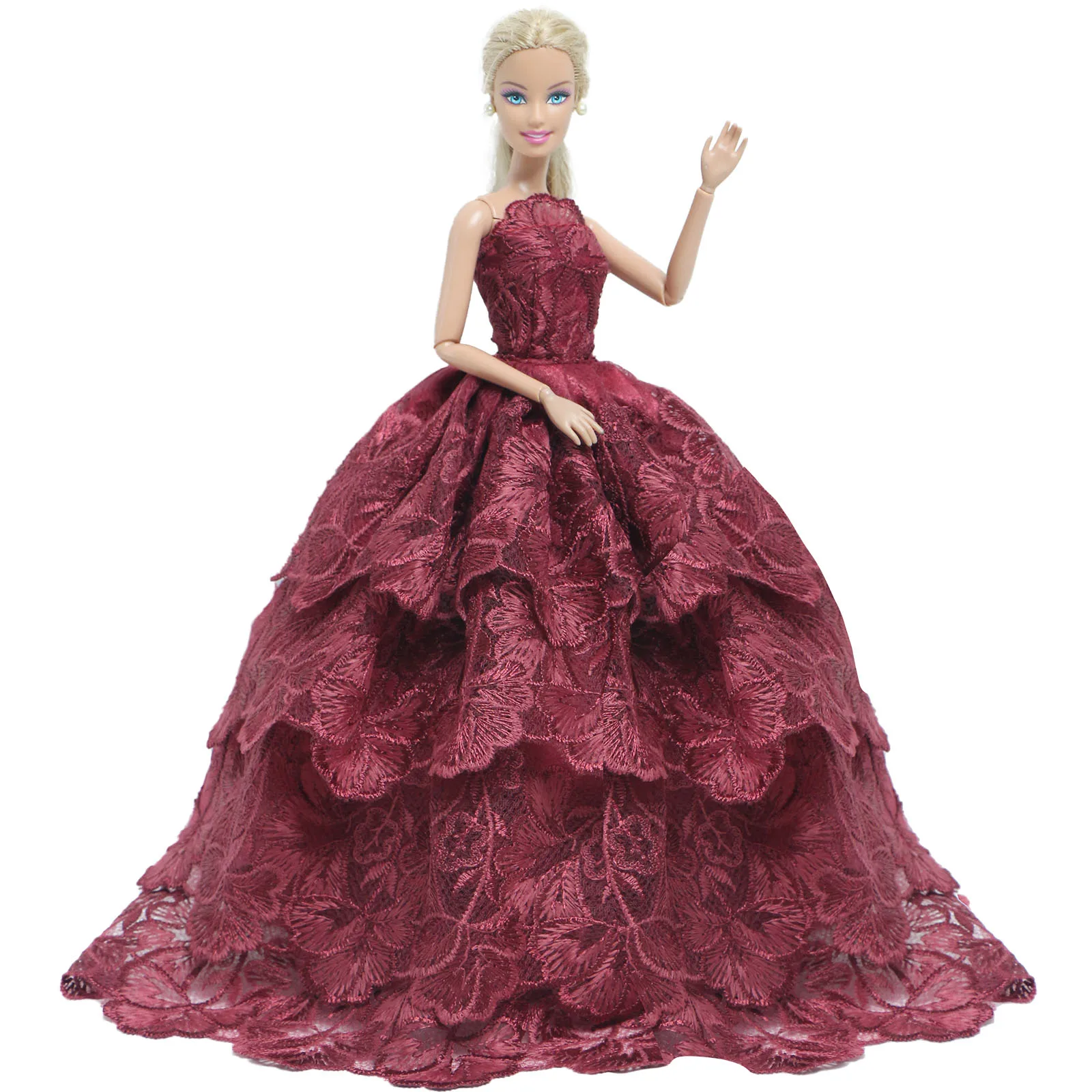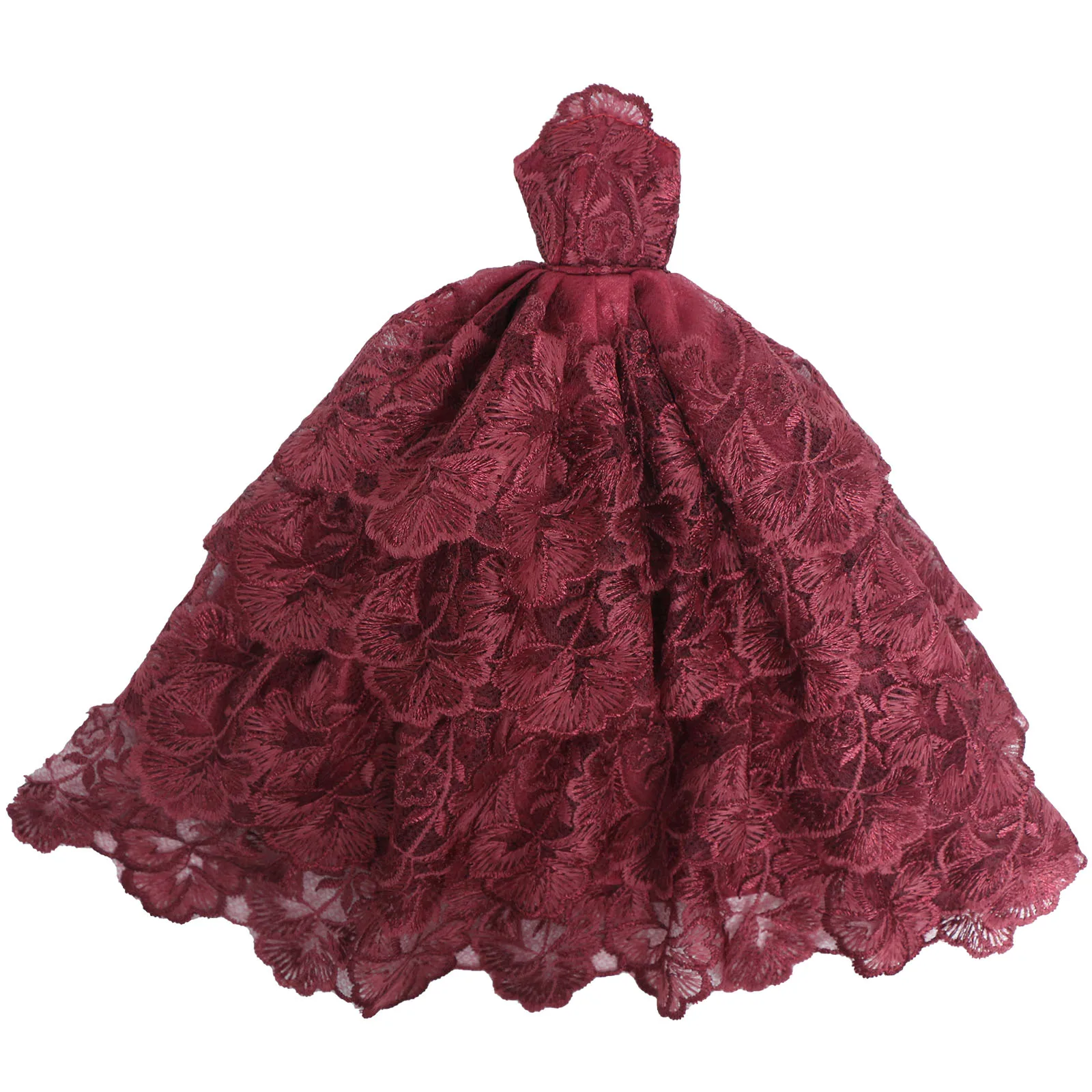 1x бальное платье принцессы ручной работы винно-красного цвета без бретелек элегантная многослойная юбка вечерняя одежда длинное платье для Барби