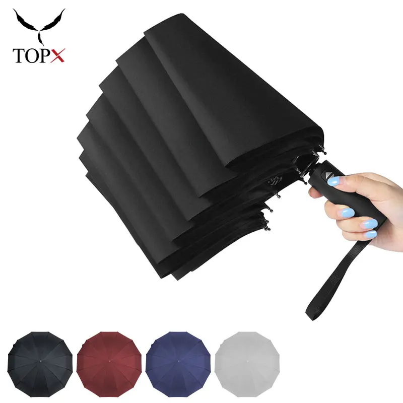 Полностью автоматический зонт с сильной защитой от ветра, 12 к, женский портативный Зонт с 3 складками и длинной ручкой, мужской зонт в деловом подарок