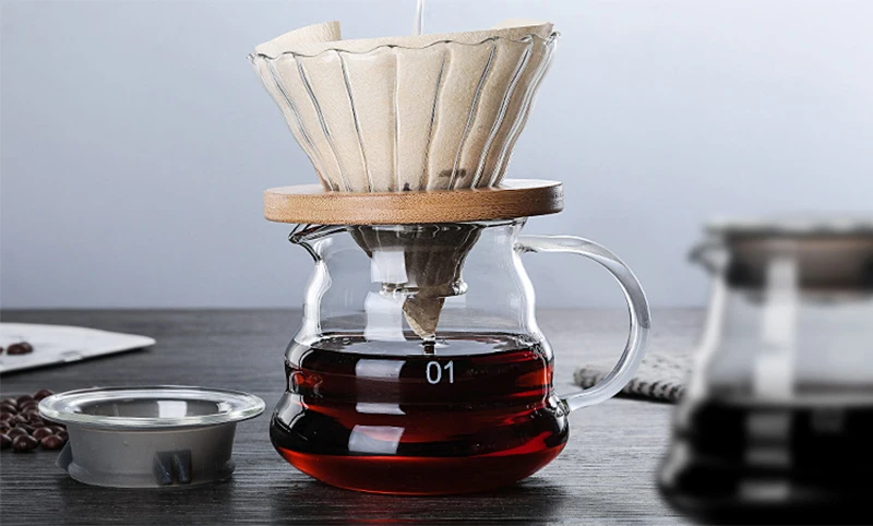 Кофейник V60 стеклянная Кофеварка деревянная 700 мл500 мл300 мл кофейная капельница и набор кофейников с фильтром