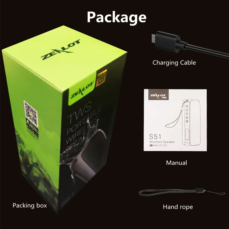 Беспроводная Bluetooth-Колонка ZEALOT S51, уличный водонепроницаемый портативный сабвуфер, поддержка воспроизведения TF-карты, AUX-аудиовход
