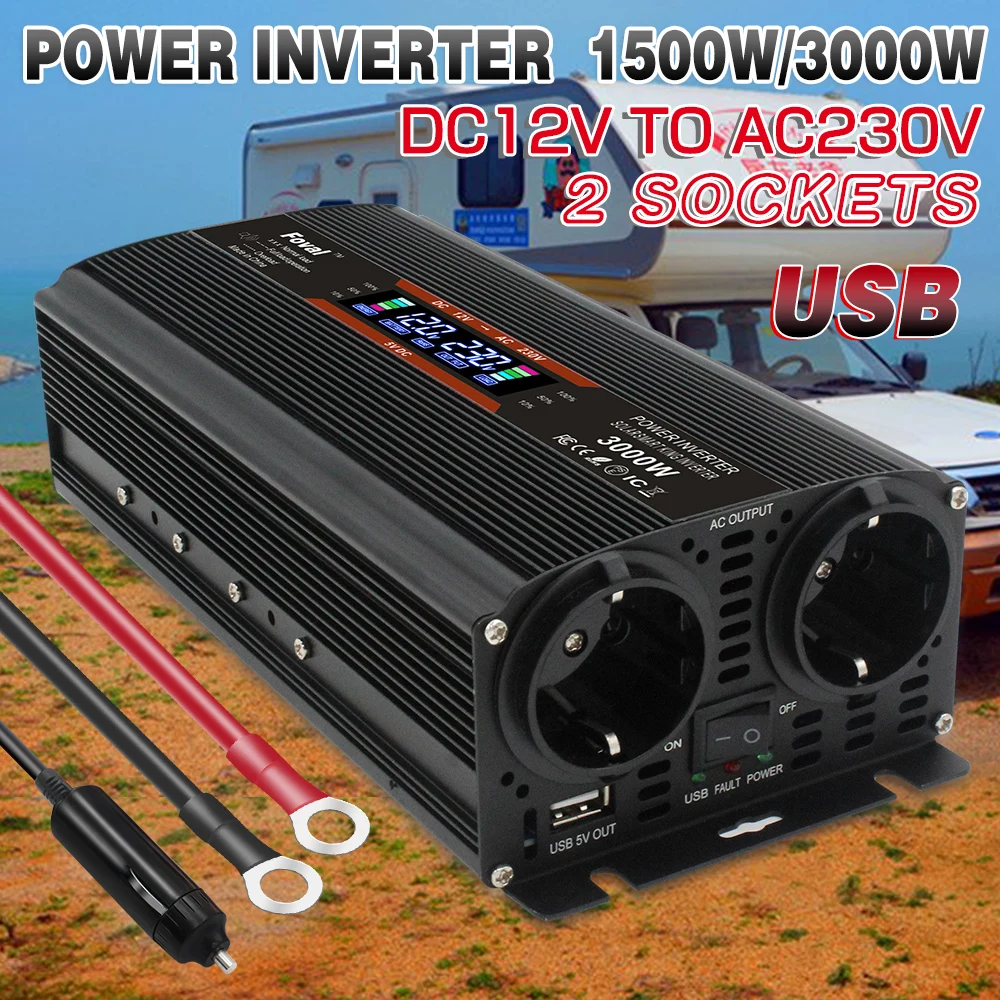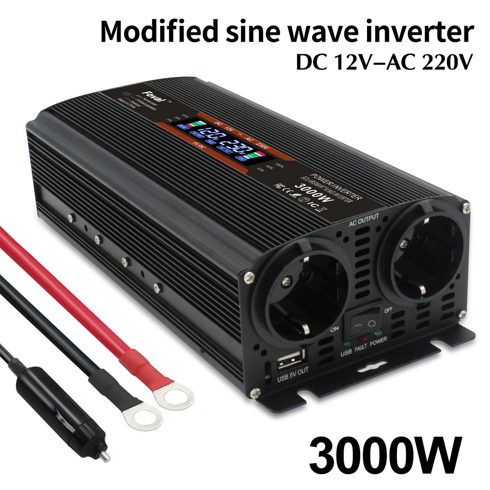 1500 Вт2000 Вт2600 Вт модифицированный инвертор яркости с дисплеем, 12 В постоянного тока в 220 В переменного тока, солнечный 2 USB автомобильный трансформатор, преобразователь с европейской розеткой
