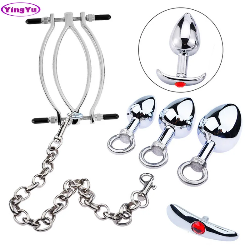 Металлический комплект Анальная пробка разделитель влагалища зажим киска с цепочкой БДСМ бондаж аксессуары для путешествий взрослые секс-игрушки для пар игровой инструмент
