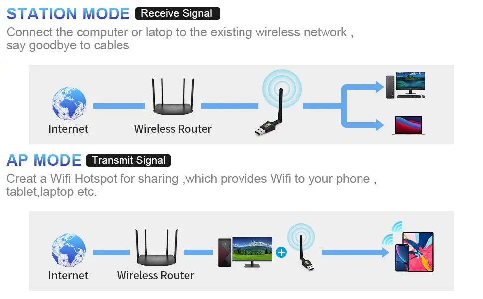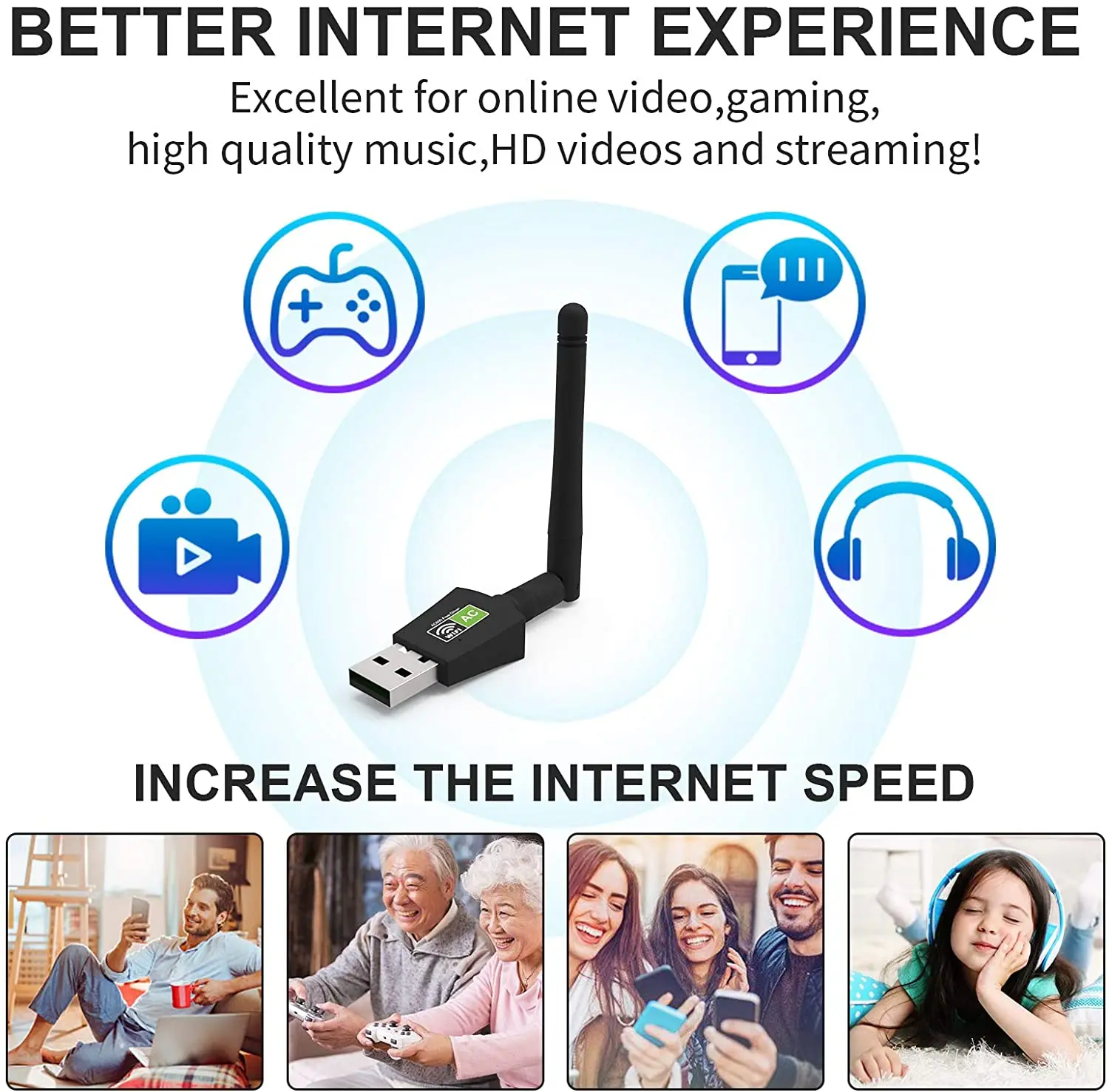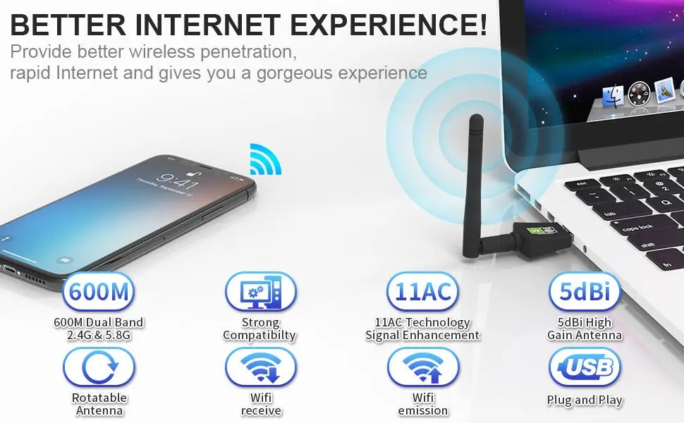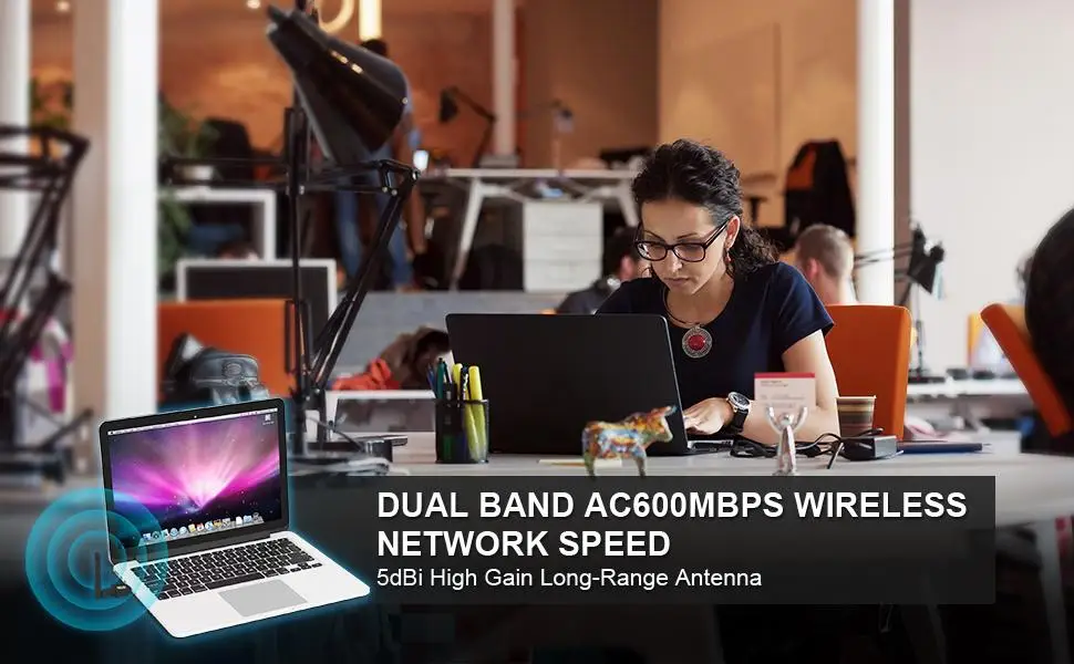 Двухдиапазонный беспроводной USB-адаптер Wi-Fi подходит для беспроводного подключения устройств, таких как настольные ПК, и может обеспечить удобный и быстрый беспроводной доступ в Интернет. NIC поставляется с драйвером Udisk, который поддерживает установку CD-ROM без необходимости использования оптического привода.