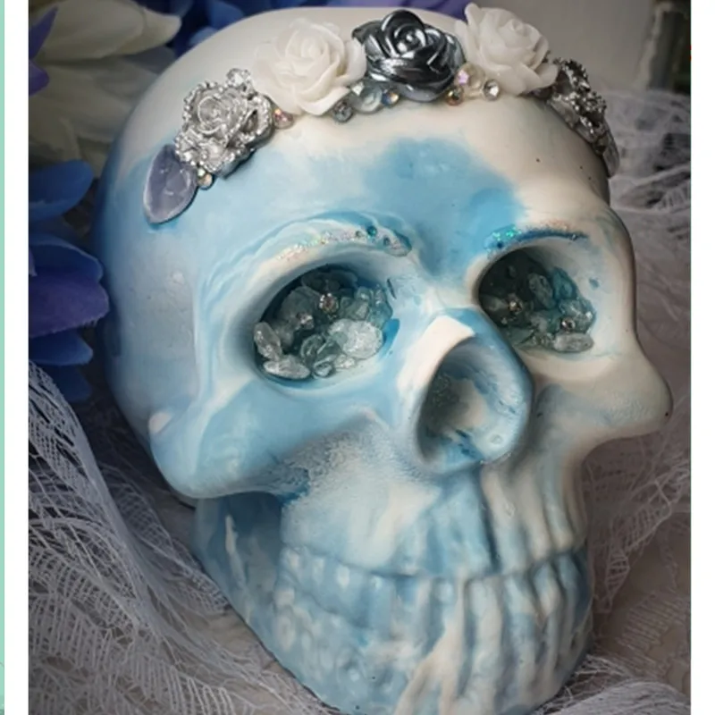 Силиконовая форма для свечей с большим зеркальным черепом для украшения рабочего стола ручной работы, гипсовая эпоксидная смола, силиконовая форма для ароматерапии