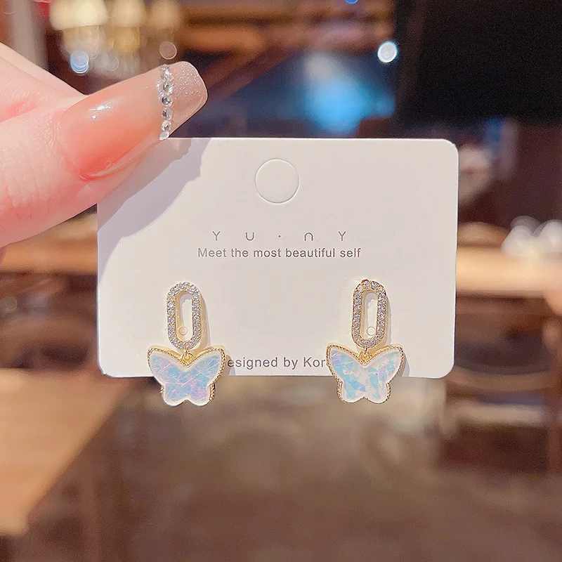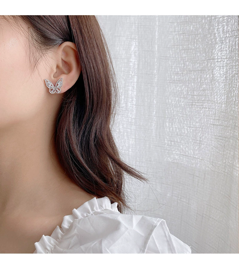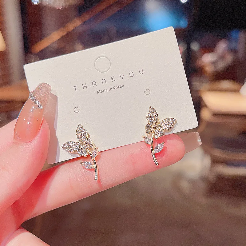 Серьги-бабочки с кристаллами циркона для женщин, модные металлические ювелирные изделия из серебра 925 пробы с иглой золотого и серебряного цвета для вечеринок, подарок для девушек