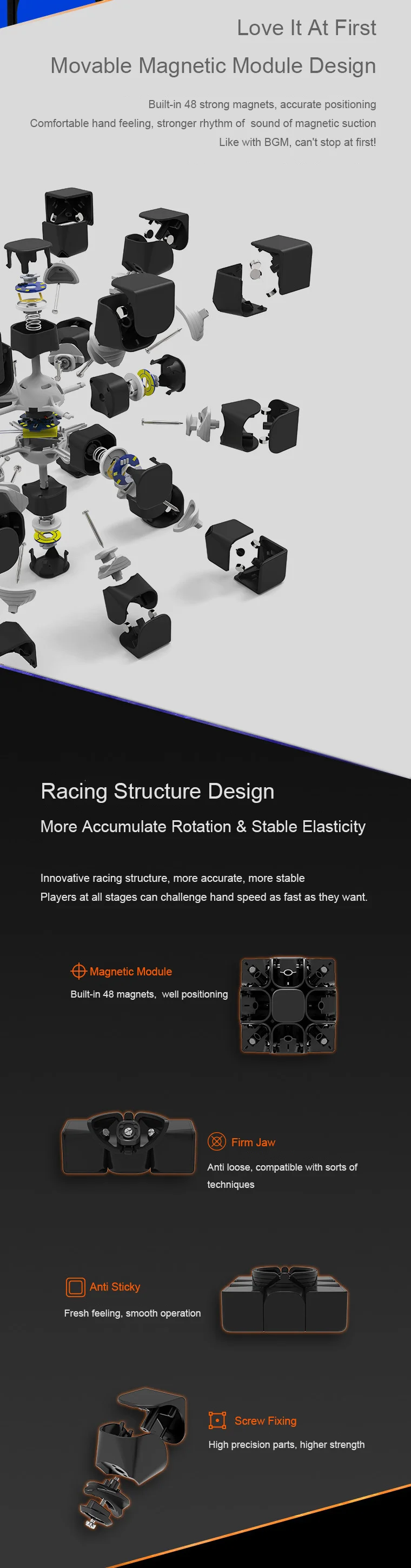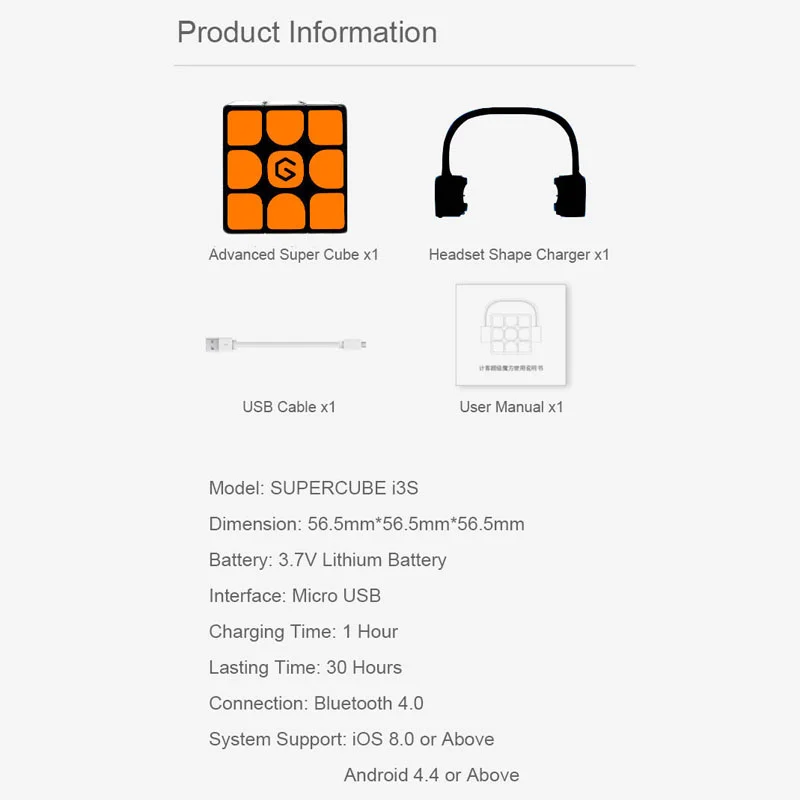 * Технология GiiKER CUBE-SYNC обнаруживает данные о движении магического Куба в реальном времени через встроенный датчик движения и передает его на ЦП, расположенный в центре сферической оси. В сочетании с алгоритмом распознавания, он автоматически вычисляет статус в реальном времени каждой стороны магического Куба и подключается к приложению телефона через bluetoot, обеспечивая синхронизацию.