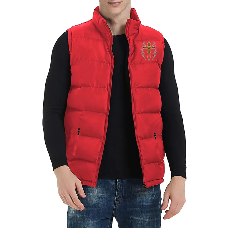 Мужская куртка без рукавов, теплая и ветрозащитная пуховая куртка с золотым накрестным принтом, Осень-зима 2021