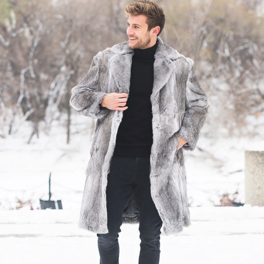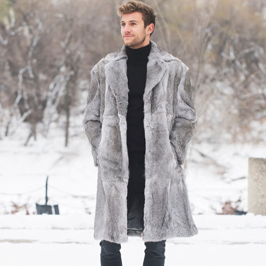 Мужская парка из кроличьего меха, зимняя теплая парка с подкладкой ...