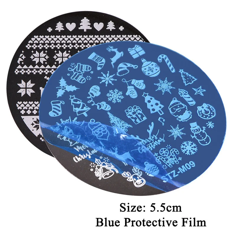 Рождественские круглые пластины для стемпинга ногтей со снежинками ...