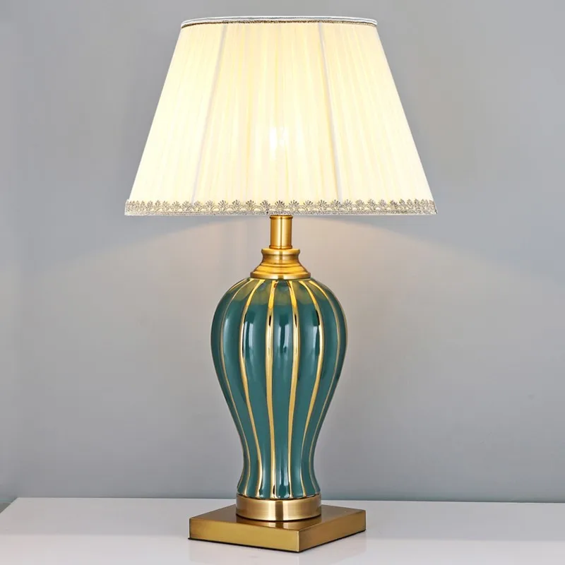 SAROK Керамическая Настольная лампа для прикроватного столика, светодиодная настольная лампа, зеленая, роскошное украшение для гостиной, спальни, библиотеки, кабинета, офиса