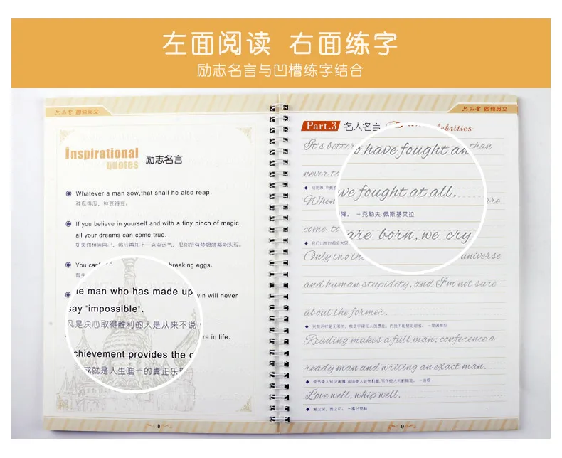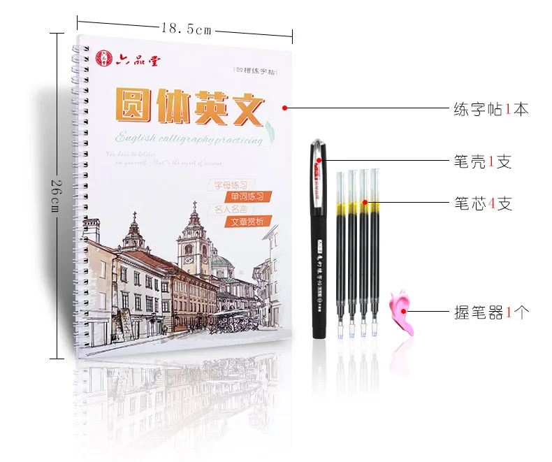 Тетрадь для каллиграфии с круглым шрифтом на китайском и английском языках, 1 комплект