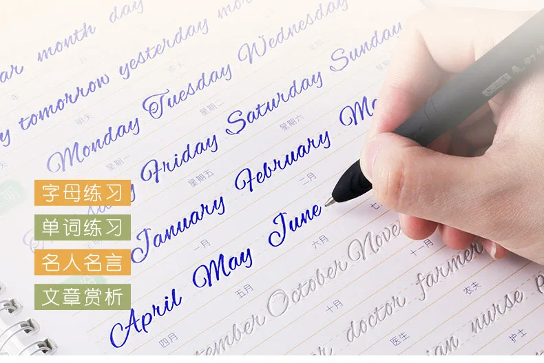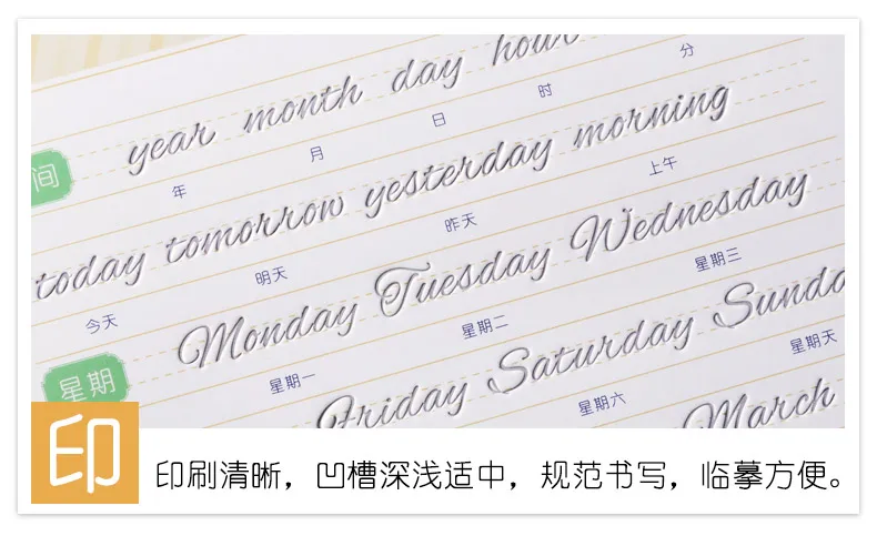 1 книги/набор, Круглый шрифт, китайский и английский, копировальная книга для каллиграфии, Студенческая книга для рукописного письма для детей