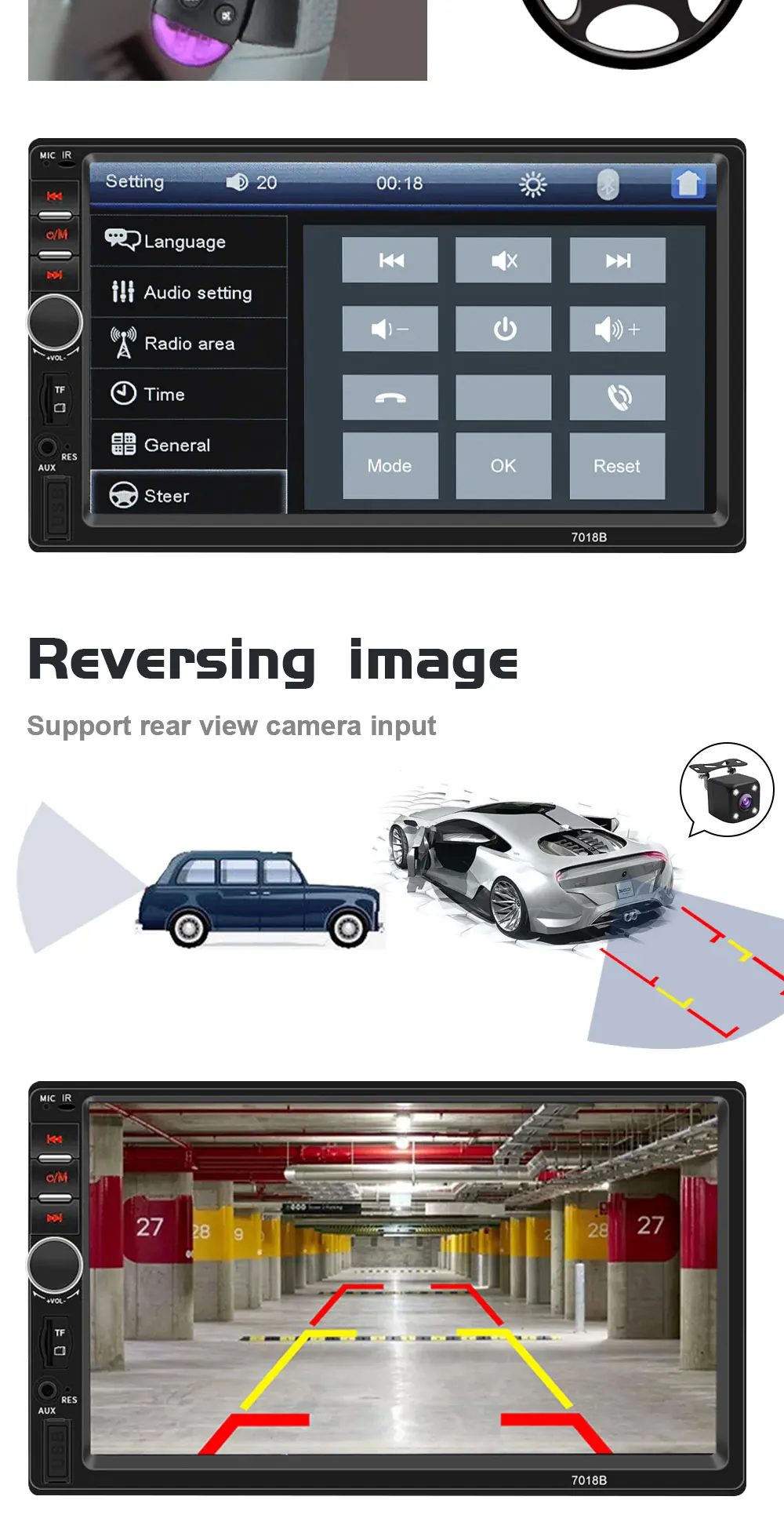 Автомагнитола 7 дюймов, 2 Din, сенсорный экран, радио, Bluetooth, стерео, MP5, мультимедийный видеоплеер, дисплей заднего вида, USB соединение, Android, IOS