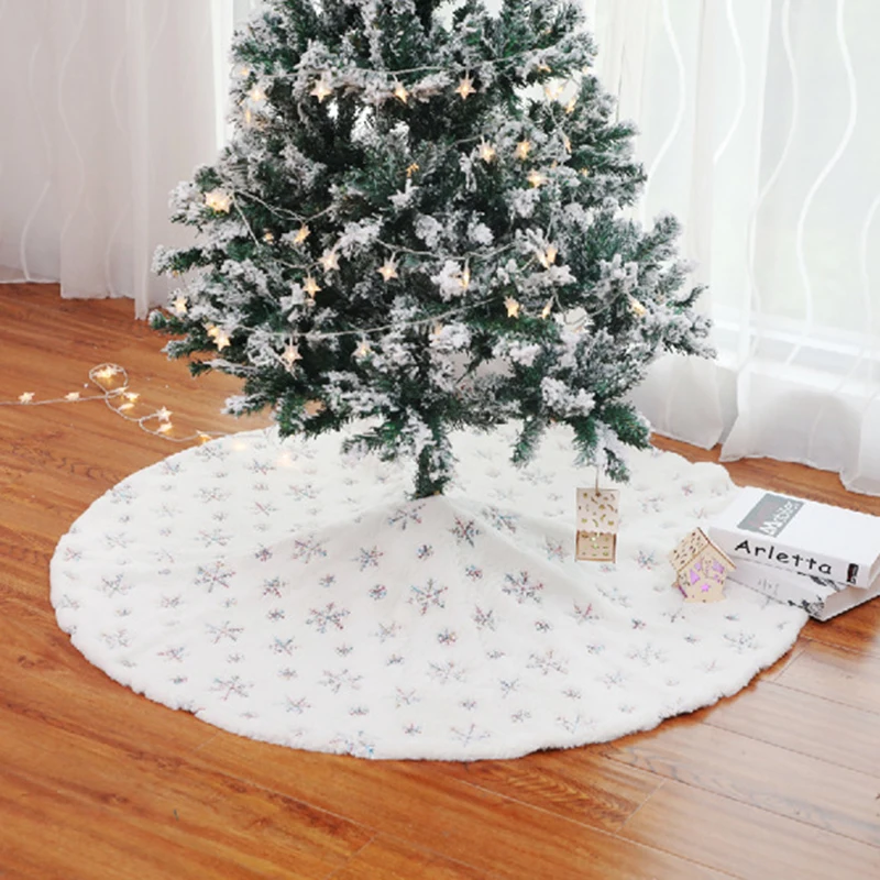 Рождественская елка плюшевая юбка 3548 дюймов Большая пушистая новогодняя елка коврик снежинки узоры круглая скатерть с зонтиком отверстие frrg