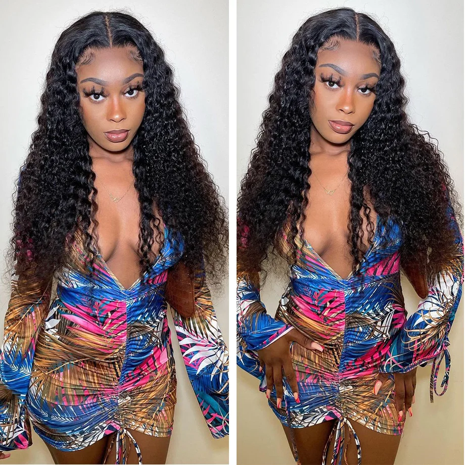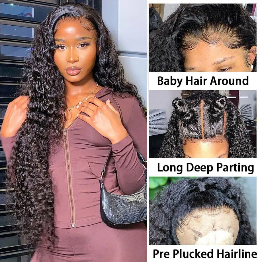 Парик 13x 4 на сетке спереди, парик из вьющихся человеческих волос, бразильский парик с глубокой волной, предварительно выщипанный парик для женщин, расплавленные прозрачные парики на сетке спереди
