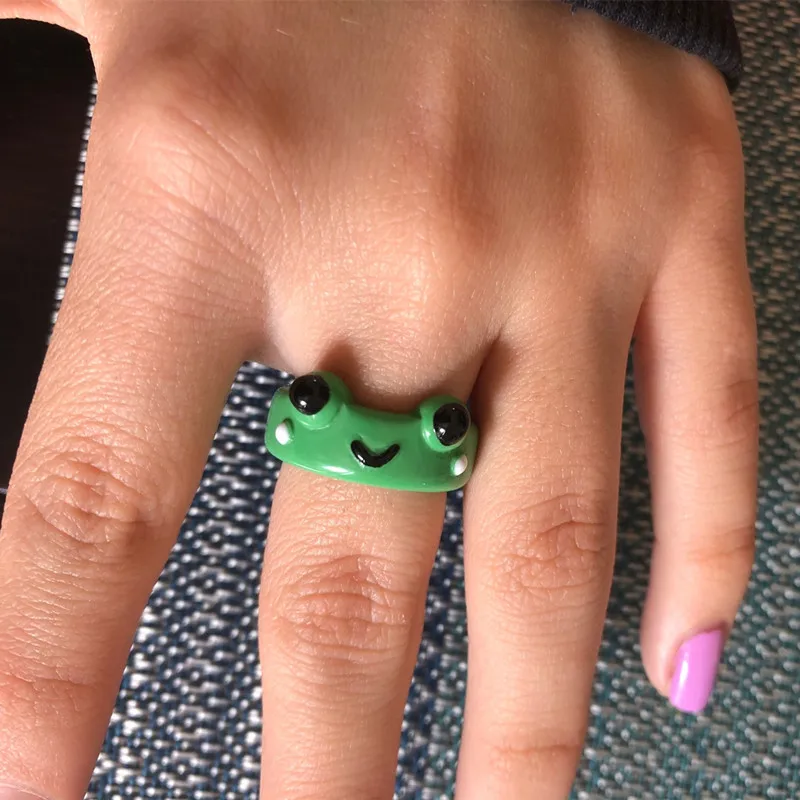 Акриловое кольцо с лягушкой Полимерная глина Смола Кольца для девоч...