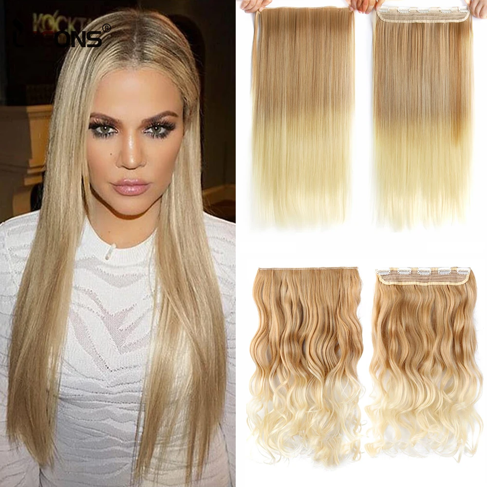 Leeons Synthetic 22 Inch Clip In Hair Extensions 5 Clips Straight Ombre Color False Hairpiece Clip In One Piece Hair Extensions