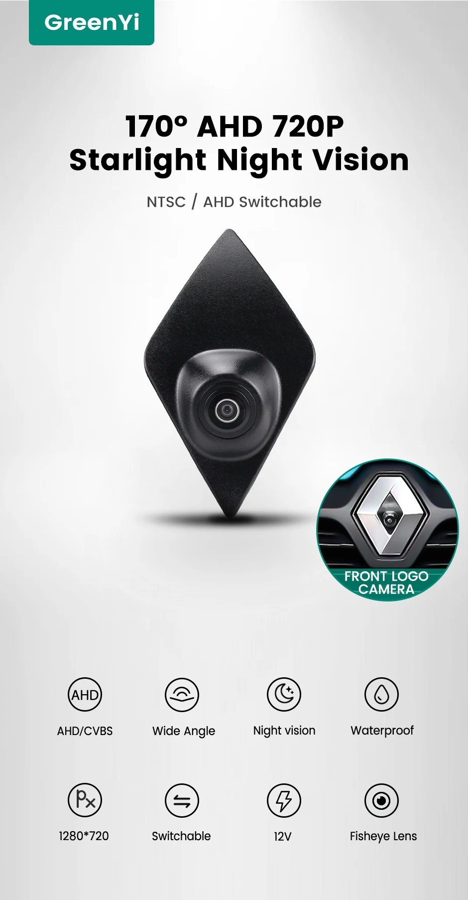 GreenYi 170 AHD 720P Автомобильная камера переднего вида ночного видения для Renault Koleos Logo Fisheye Lens HD Camera