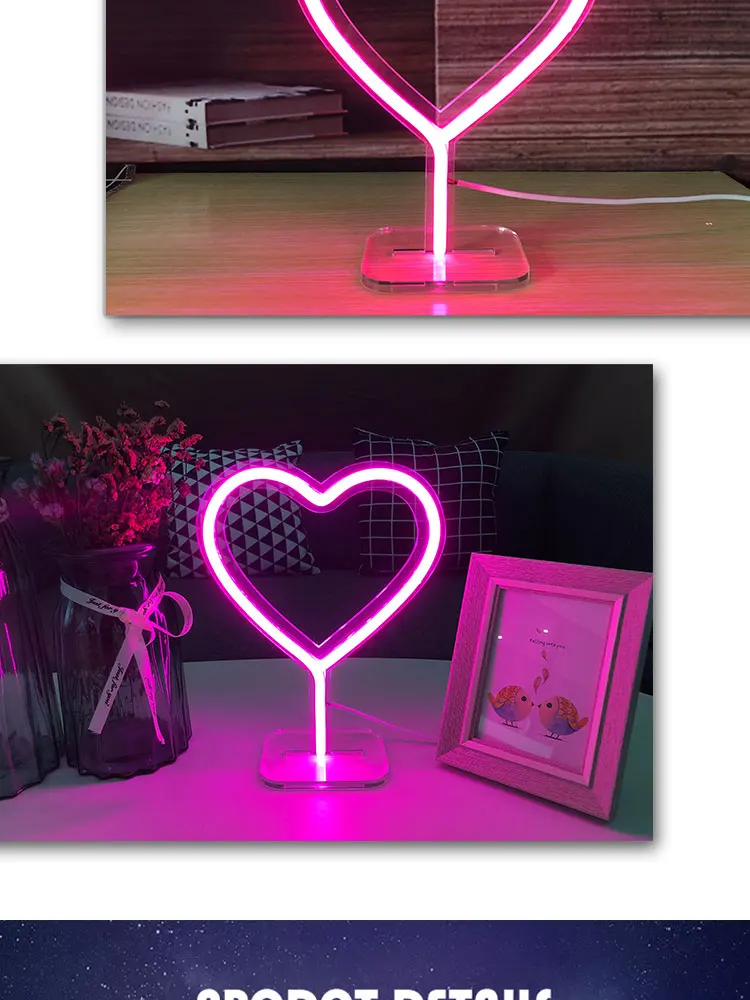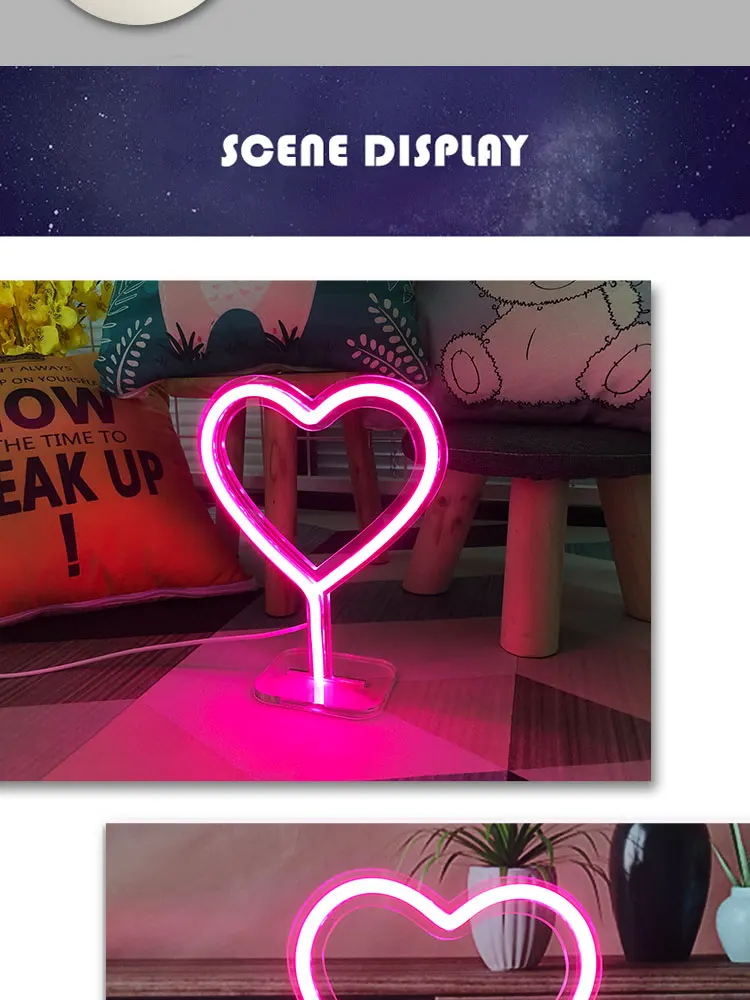 Неоновый светодиодный светильник в форме сердца, Настенный декор для спальни, дома, стола, украшение, настольная лампа, подарок для детей