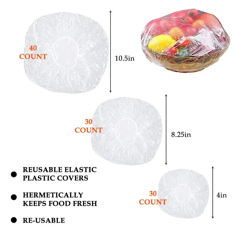 Спецификация: Цвет: прозрачный Материал: пищевой полиэтилен Функция: растягивающаяся сумка для свежего хранения, Пыленепроницаемая, защита от насекомых и защита от запаха! Подходит для всех размеров посуды.