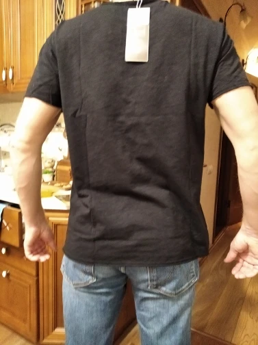 Очень хорошая футболка! Лёгкая, тонкая, чистый хлопок. Материал такой фактурный, не гладкий. Очень приятная. На рост 178 см и вес 72 кг слегка свободновата. Доставка до Москвы-две недели. Трек-номер отслеживался.