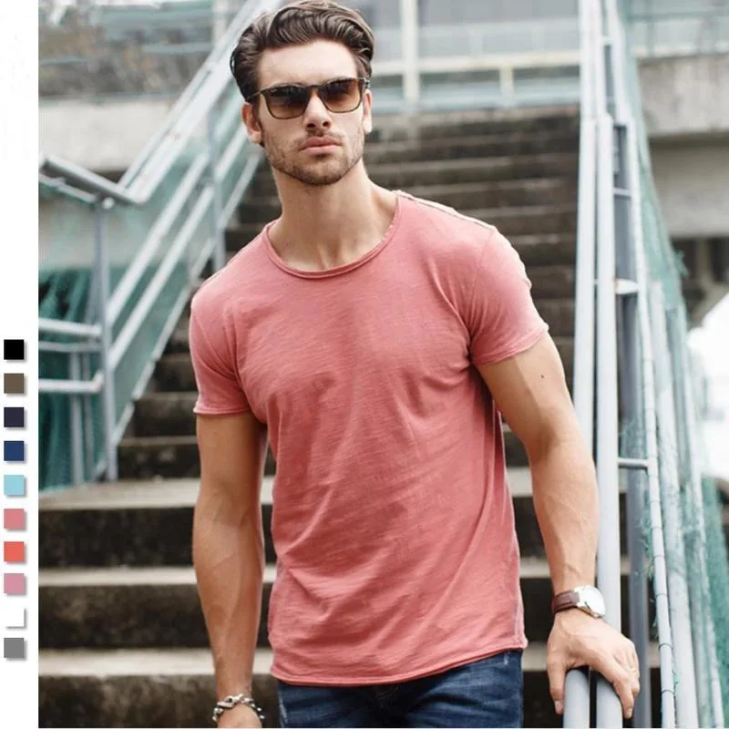 Качественная мужская футболка из 100% хлопка, Модная приталенная однотонная мужская футболка с коротким рукавом, футболка в бразильском стиле